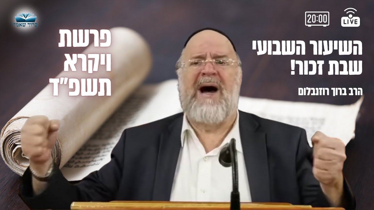 דרשת שבת זכור ! פרשת ויקרא תשפ"ד - הרב ברוך רוזנבלום - מבקשי ה' אלעד #bringthemhome