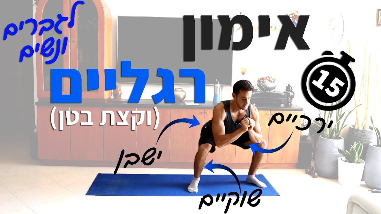 אימון רגליים ביתי 15 דקות, עם תרגילי ירכיים, ישבן וקצת בטן ללא ציוד. אימון ביתי לגברים וגם לנשים (מתאים גם לנערות) לחיזוק + חיטוב הרגליים, בסגנון פירמידה. מי שרוצה אימון קשה יותר יכול להוסיף משקולות בחלק מהתרגילים. אימונים נוספים כבר בערוץ, ועוד אימוני כושר בדרך, אל תשכחו להירשם (זה בחינם) כדי לא לפספס אימונים - Subscribe :) _______________ צילום הסרטונים, העריכה, וכל מה שמסביב לוקח לא מעט זמן.. במידה ותרצו לעזור לי בחזרה ולתמוך בעבודה שלי אפשר להשאיר טיפ בביט/פיי (0526866173) או בפייפאל: galyyy@gmail.com תודה רבה! ❤ ______________ עובדים קשה על חיטוב אבל לא רואים תוצאות? מנסים לעלות במסת השריר ומרגישים תקועים? מוזמנים להצטרף לליווי האונליין לחיטוב או עלייה במסה, מכל הארץ. לפרטים: http://www.galh.co.il/תוכנית-האונליין/ ____________________ מוזמנים לעקוב ולשתף איתי גם באינסטגרם: https://www.instagram.com/galhfit #אימון #רגליים #כושר