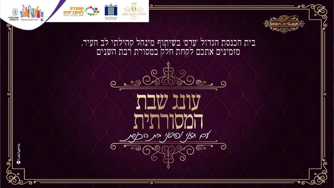 צפייה ישירה ב-YouTubeעונג שבת המסורתית בבית הכנסת הגדול עדס מוצש''ק וישלח תשפ''א אודל הפקות