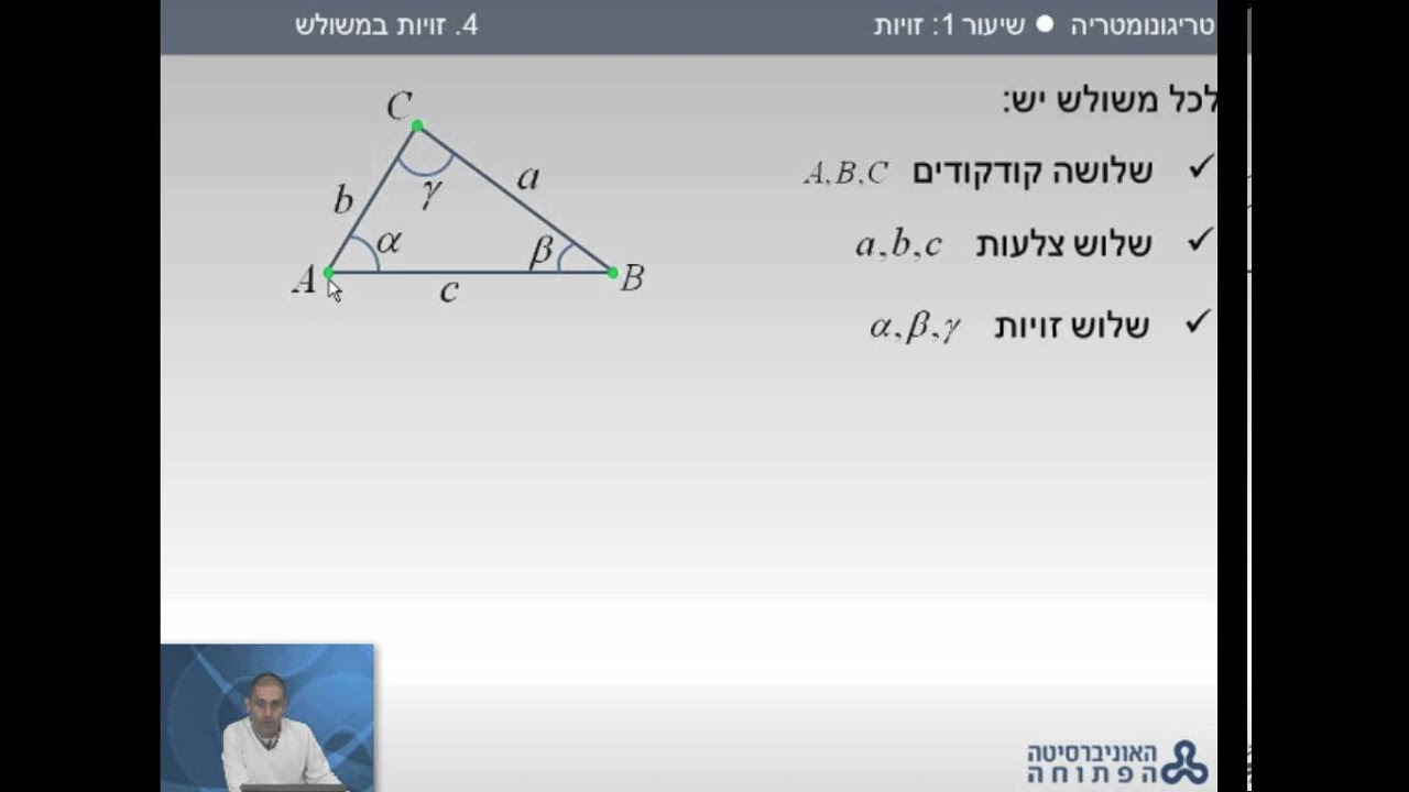 שיעורי הכנה במתמטיקה - טריגונומטריה, שיעור 1: זויות, ד"ר גיל אלון