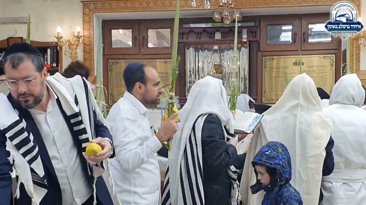 חול המועד סוכות באומן: תפילת שחרית והלל ואמירת הושענות בציון רבנו הקדוש