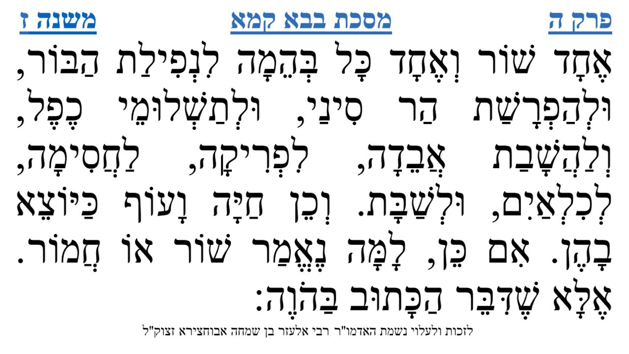 צפייה ישירה ב-YouTubeמסכת בבא קמא פרק ה משנה ז