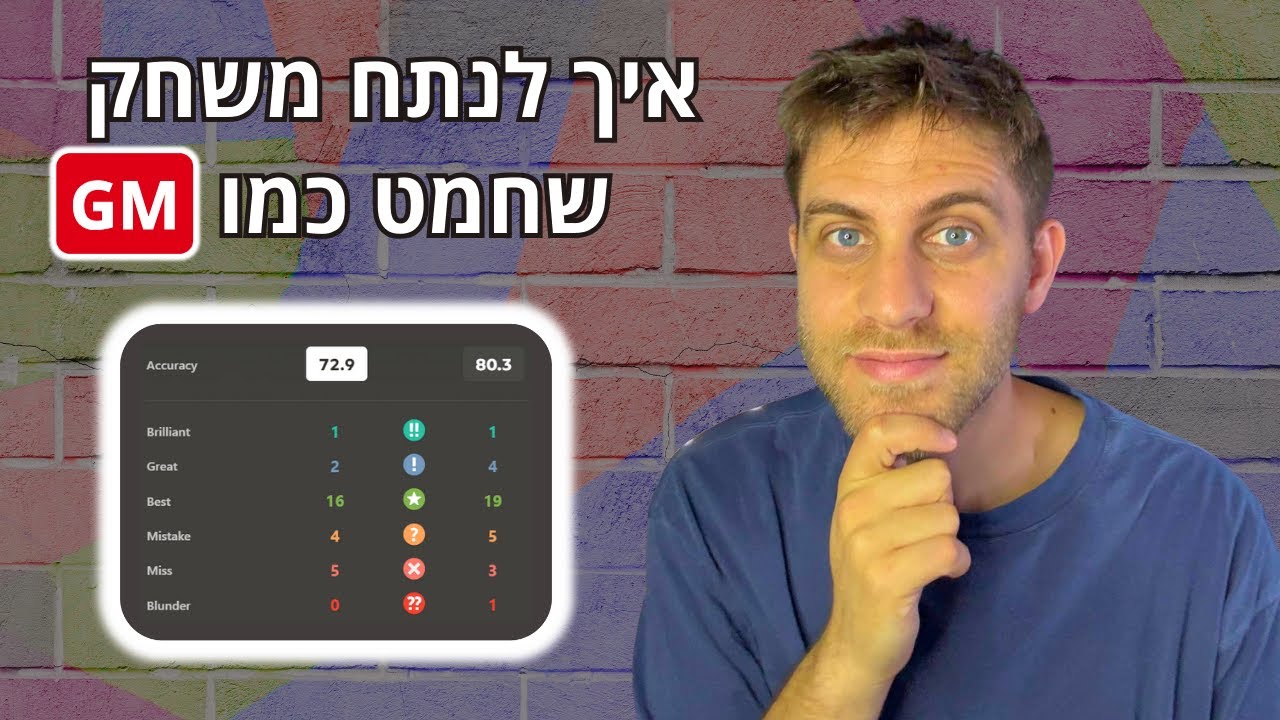 השיעור החשוב ביותר שיש בעולם! איך לנתח משחק? הפסדתם? ניצחתם? עשיתם תיקו? חייבים לנתח את המשחק לפני שממשיכים למשחק הבא... סתם נו, לא באמת חייבים, אתם מכירים אותי, אבל אני ממש ממליץ! איך לנתח? מה לעשות? הכל תראו בסרטון הזה. מוזמנים לשאול שאלות בתגובות. אם אהבתם אל תשכחו לפרגן בלייק ולהירשם כמנויים לערוץ לעוד סרטונים מכל הסוגים. 🎓 לימוד שחמט בכיף לילדים: 🔹https://www.chessworld.io/ 🔹אייפון: https://apps.apple.com/us/app/chessworld-chess-for-kids/id1112656776 🔹אנדרואיד: https://play.google.com/store/apps/details?id=com.altermanchess.AltermanChessEdu הירשמו בחינם לאתר שידהים אותכם! באמצעותו תוכלו ללמוד פתיחות, לשנן וריאנטים, לשפר את הזיכרון ולהשתפר בשחמט ופשוט לנצח. https://www.chessshare.com/# ♟️ הירשמו ל-Outpost – הבית החדש לשחקני שחמט: https://outpostchess.com/?utm_source=YouTube&utm_medium=Nitzan אימייל לשליחת משחקים עבור נחש את מד הכושר ונחש את הערכת העמדה! nitzan.steinberg18@gmail.com 🎯 הצטרפו עכשיו לקבוצת הליצ'ס של הקהילה! 🏆 תחרויות, פרסים, ועוד הפתעות! 🔗 https://lichess.org/team/DR3Y5DS6 | סיסמה: 2025! 💙 נהנים מהתכנים שלי? אפשר לתמוך כאן: https://www.paypal.me/NitzanSteinbergChess 📱 הרשתות החברתיות שלי: 🔹 אינסטגרם: https://www.instagram.com/nitzan_steinberg_/ 🔹 טוויץ': https://www.twitch.tv/nitzansteinbergchess 🔹 פייסבוק: https://www.facebook.com/nitzan.steinberg 🔹 דיסקורד: https://discord.com/invite/t8Anrz5VpM 🔹טוויטר: https://twitter.com/SteinbergNitza1 🔹ערוץ יוטיוב באנגלית: https://www.youtube.com/@UCOPwWRP_SvWb7r6pnfs41Ww 🔹לינקדין: https://www.linkedin.com/in/nitzan-steinberg-a62112217/ 💬 קבוצת וואטסאפ פתוחה: 🔹https://chat.whatsapp.com/EdTr2ZCClu1HX9HHEpEhsx ♟️ פרופילים אישיים שחמט 🔹פידה: https://ratings.fide.com/profile/2801795 🔹בצ'ס קום: https://www.chess.com/member/nitzan_steinberg 🔹בליצ'ס: https://lichess.org/@/Nizi3