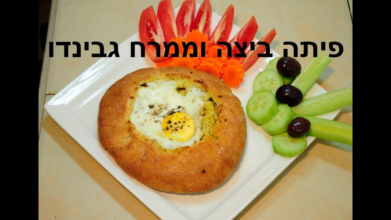 פיתה בגריל עם קצוות ממולאים בממרח גבינדו וביצה