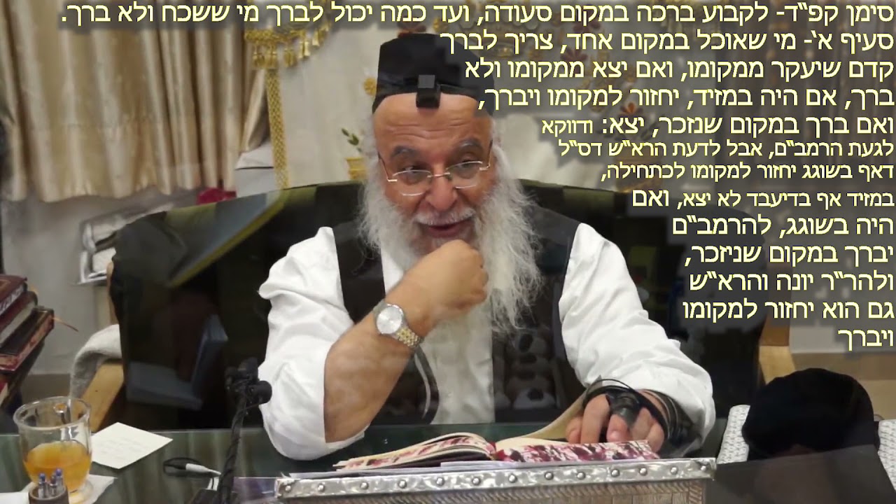 307הלכה יומית סימן קפג - סעיף יב סימן קפד- לקבוע ברכה במקום סעודהסעיף א-ב הרב בניהו שמואלי