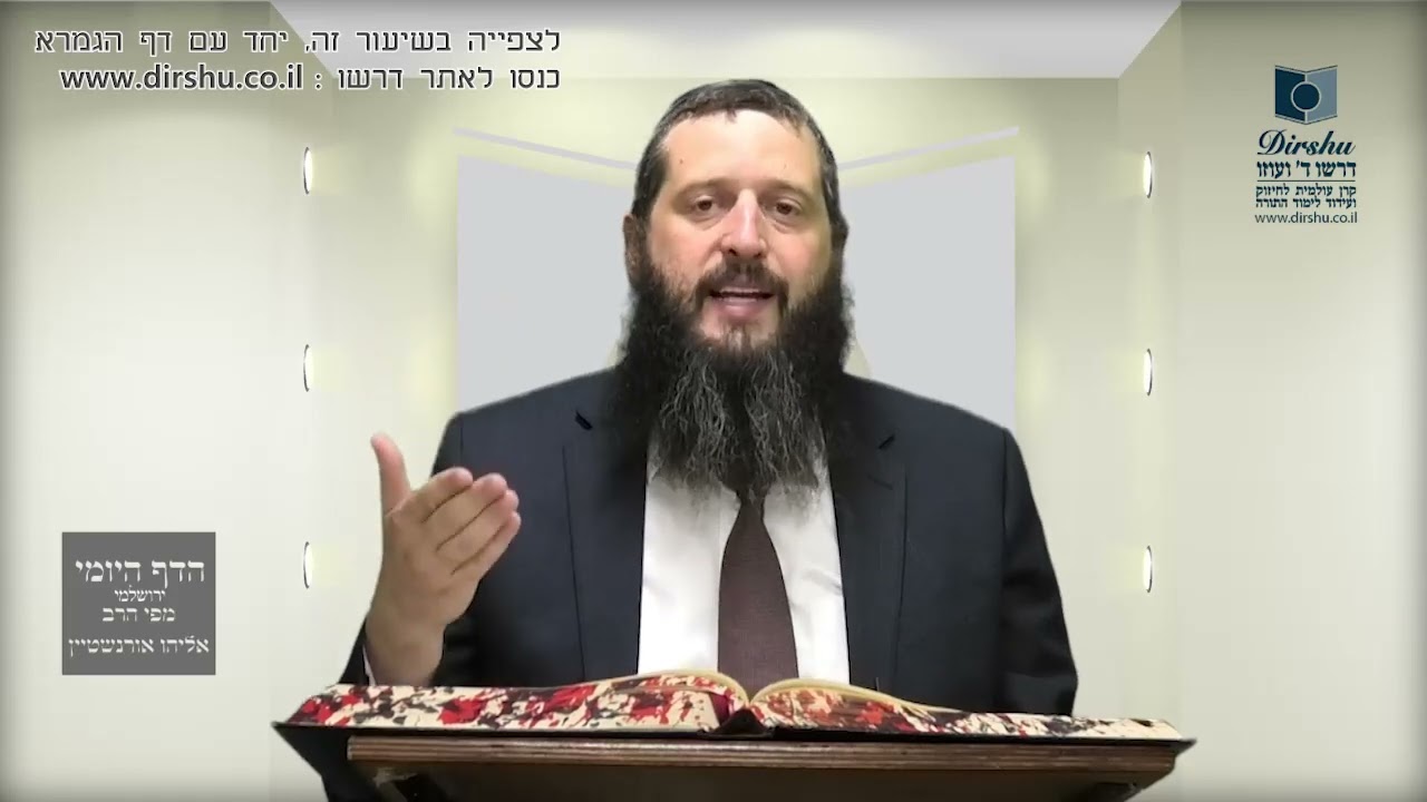 דף היומי - שיעורי הדף היומי בגמרא תלמוד ירושלמי מסכת שביעית מבית "דרשו" עם הרב אליהו אורנשטיין שליט"א, הדף יומי קצר וישיבתי לשיעורים נוספים באתר דרשו: http://www.dirshu.co.il/