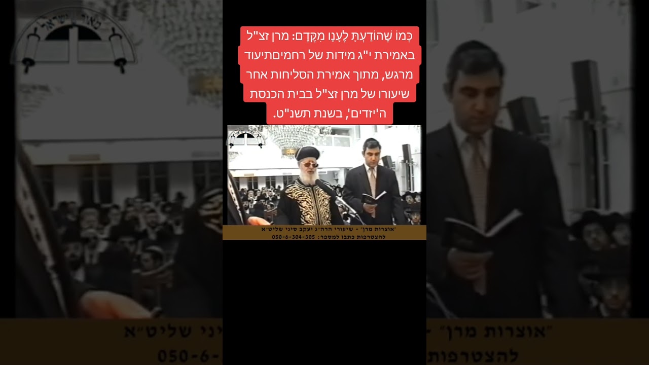 כְּמוֹ שֶׁהוֹדַעְתָּ לֶעָנָו מִקֶּדֶם: מרן זצ"ל באמירת י"ג מידות של רחמים תיעוד מרגש, מתוך אמירת הסליחות אחר שיעורו של מרן זצ"ל בבית הכנסת ה'יזדים', בשנת תשנ"ט. https://t.me/dxfdhj