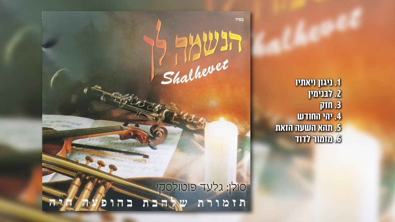 לשמיעת כל שירי גלעד פוטולסקי ותזמורת שלהבת To hear all the songs of Gilad Potolsky and Shalhevet Orchestra זמר אורח - הנשמה לך 1: אפרים מנדלסון. 1. ניגון ויאתיו. לחן: הרב שלמה קרליבך. 2. לבנימין אמר ידיד השם ישכון לבטח עליו. מקור: אברהם פריד. 3. איש את רעהו יעזורו ולאחיו יאמר חזק, נשיר ביחד, חזק חזק ונתחזק עד ביאת גואל. מקור: אברהם פריד. 4. יהי החודש הזה כנבואת אבי חוזה וישמע בבית זה קול ששון וקול שמחה, חזק ימלא משאלותינו אמיץ יעשה בקשתנו והוא ישלח במעשה ידינו ברכה והצלחה. מקור: יידל ורדיגר. 5. תהא השעה הזאת שעת רחמים ועת רצון מלפניך. לחן: משה לאופר. 6. ניגון מזמור לדוד. לחן: הרב שלמה קרליבך. ספוטיפיי - Spotify https://open.spotify.com/artist/0qYJ1FO8HqG5JKXOC4zDrl אפל מיוזיק - Apple Music https://music.apple.com/mx/artist/%D7%92%D7%9C%D7%A2%D7%93-%D7%A4%D7%95%D7%98%D7%95%D7%9C%D7%A1%D7%A7%D7%99/1535636972 דיזר - Deezer https://www.deezer.com/us/artist/122645762?utm_campaign=clipboard-generic&utm_source=user_sharing&utm_medium=desktop&utm_content=artist-122645762&deferredFl=1 אמזון - Amazon Music https://music.amazon.es/artists/B08W2JCHYC/%D7%92%D7%9C%D7%A2%D7%93-%D7%A4%D7%95%D7%98%D7%95%D7%9C%D7%A1%D7%A7%D7%99 יוטיוב - YouTube 👇👇 הנשמה לך 1 "תזמורת שלהבת בהופעה חיה" https://www.youtube.com/watch?v=xoHGNv6Ju7s&list=PLlCtSPZEQF7rknCKF4H90MdnezkCgCzRj הנשמה לך 2 יחד יחד https://www.youtube.com/watch?v=3RDSkJwEyQU&list=PLlCtSPZEQF7p338aehtjpu-DyZOPslXsX הנשמה לך 3 והתענג על השם https://www.youtube.com/watch?v=D55ZLeb-iqY&list=PLlCtSPZEQF7r03EdPCquynLbS1711L7fX הנשמה לך 4 ושיר אערוך לך https://www.youtube.com/watch?v=UTdaWQbJ0VU&list=PLlCtSPZEQF7qZA_jRdeMjLyXlda0d4bmE הנשמה לך 5 בניגון ובנעימה https://www.youtube.com/watch?v=YLPyBXooB70&list=PLlCtSPZEQF7oBb1w_m-JGkESP--1P75n_ הנשמה לך 6 ושבתי https://www.youtube.com/watch?v=zukpc0iWsr8&list=PLlCtSPZEQF7p9HNGCX9IKVhSCwmX1wBMI הנשמה לך 7 בנין עדי עד https://www.youtube.com/watch?v=YcKPFGo9I3E&list=PLlCtSPZEQF7p_idvSzKsqD4XsYwu1DBMt הנשמה לך 8 שמחת בית השואבה https://www.youtube.com/watch?v=AMQ4vq0apsc&list=PLlCtSPZEQF7pGN97hWBichNDi-CF3vY6i הנשמה לך 9 להודות ולהלל https://www.youtube.com/watch?v=NzayiQmDQao&list=PLlCtSPZEQF7rCsqkB9rAf6avnFMkw0_jn זמירות לשבת https://www.youtube.com/watch?v=ojGlPkm8bjk&list=PLlCtSPZEQF7rPBImmtT-rZsVHo22pyuv_ סינגלים https://www.youtube.com/watch?v=wq7Bb_hM1Oc&list=PLlCtSPZEQF7p_7jnrGHXlGFkhRjYk9sb4 שירים חסידיים / מוזיקה חסידית / שירי נשמה / שירי קרליבך / שירי רגש / להקת שלהבת / שירים לימים הנוראים / שירים לראש השנה / שירים ליום כיפור / שירים לחגים / שירי שבת / שירים ווקאלים 00:00 ניגון ויאתיו 01:50 לבנימין 04:55 חזק 07:56 יהי החודש 11:06 תהא השעה הזאת 13:31 מזמור לדוד