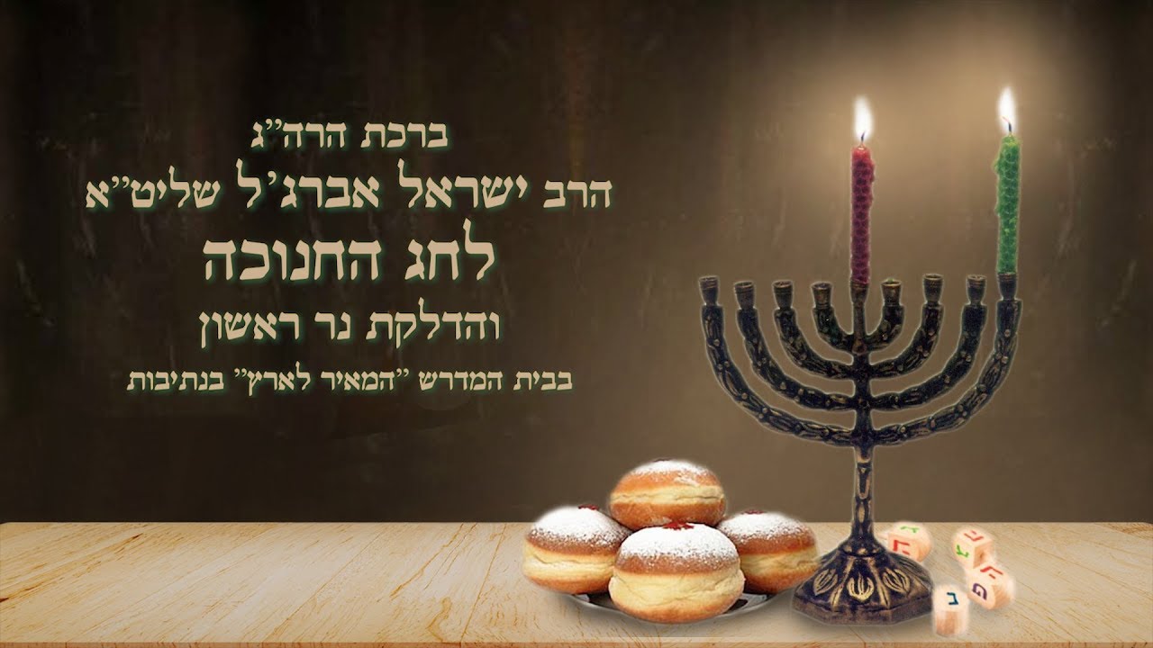 ברכת הרה"ג הרב ישראל אברג'ל שליט"א לחג החנוכה והדלקת נר ראשון בבית המדרש "המאיר לארץ" בנתיבות. היו שותפים להפצת תורה חובקת עולם! לברכות, יצירת קשר ורכישת ספרים - התקשרו עכשיו 08-3740200 עמותת "המאיר לארץ" בראשות הרב ישראל אברג'ל שליט"א. ליצירת קשר: 08-3740200 | פקס: 077-2231130.