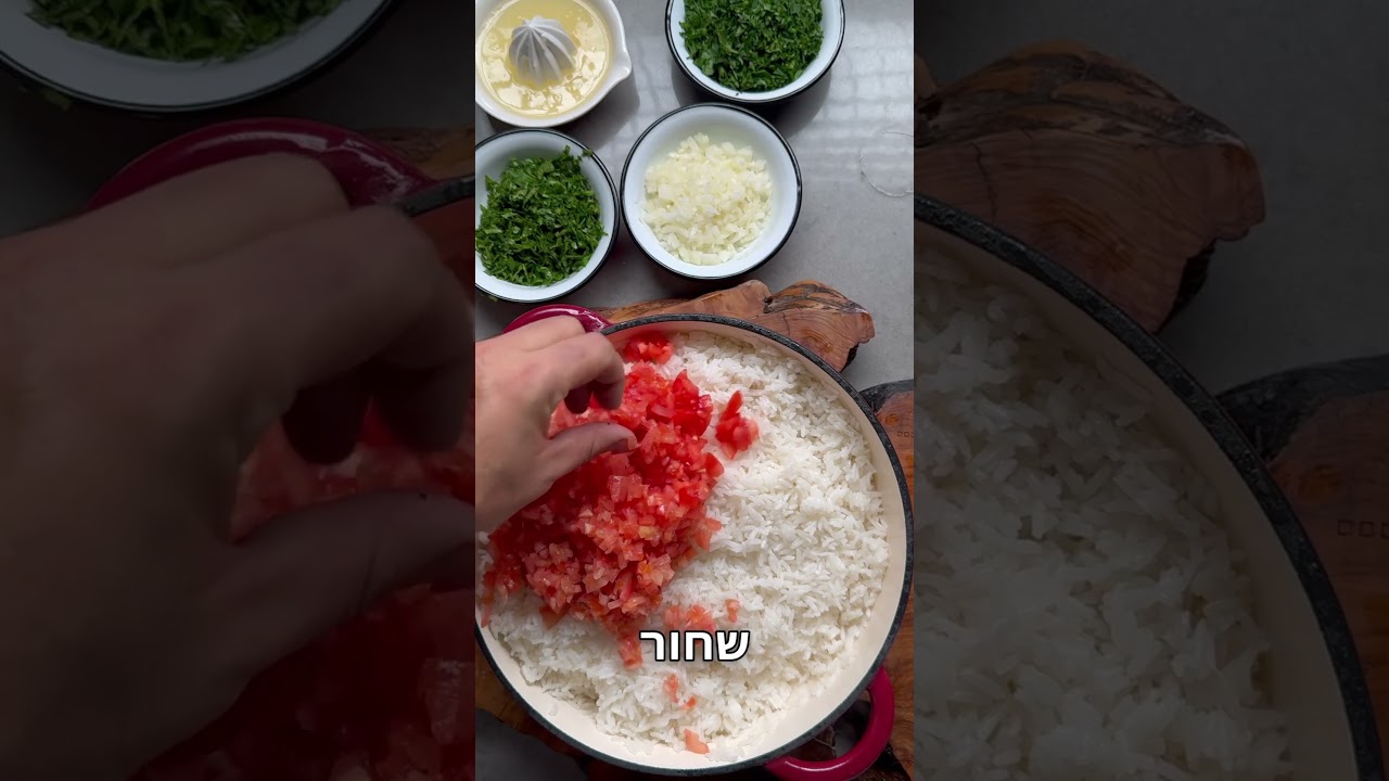 האורז של אתי דרעי שעבדתי בעין כרם אצל אתי דרעי הייתי מחכה לסוף הערב ומתפלל שישאר ביס מהאורז הזה השילוב של האורז החם עם הירקות הטריים והחמיצות של הלימון זה ביס שאני לא יכול להסביר לכם רק אם תכינו תבינו מצרכים: ⁃ 2 כוסות אורז פרסי קלאסי ⁃ 3 כפות שמן ⁃ 2 כפיות מלח ⁃ 3 כוסות מים רותחים ⁃ 3 עגבניות אדומות קצוצות דק דק ⁃ 1 בצל לבו קצוץ דק ⁃ 1 חבילת פטרוזיליה קצוצה ⁃ חופן עלי סלרי קצוץ ⁃ 2-3 לימונים סחוטים ⁃ חצי כפית פלפל שחור גרוס אופן ההכנה: ⁃ בסיר סוטאג׳ שמים את השמן נותנים לו מעט להתחמם ⁃ שמים את האורז ומטגנים מעט ⁃ מוסיפים את המלח ואת 3 כוסות המים מערבבים, מכסים, מנמיכים את האש ומבשלים 20 דקות. ⁃ כשהאורז מוכן מסירים מהאש ופותחים אותו עם מזלג ⁃ מוסיפים פנימה את כל הירק, הירקות, הלימון והפלפל השחור גרוס ⁃ מערבבים הכל יחד ⁃ ומגישים מיד שזה עדיין חם ⁃ בתאבון #אורזהפתעות #אורז #אורזלשבת #יאבלולושמבלולו #מתכונים