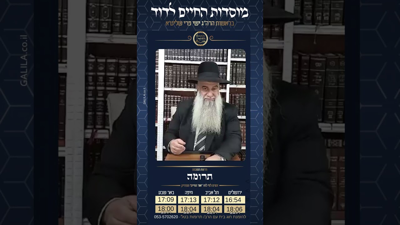 צפייה ישירה ב-YouTubeפרשת תרומה תשפ״ו מאת הרב ישי פרי שליט״א