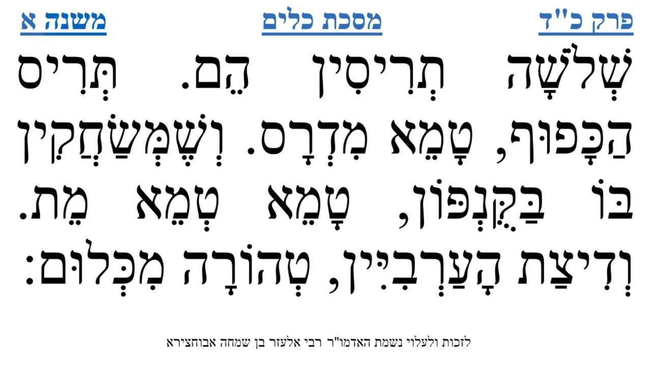 משניות מבוארות נמסרות מפי הרב ישי אבידן הלימוד לזכות ולעילוי נשמת האדמו"ר רבי אלעזר בן שמחה אבוחצירא זכר צדיק וקדוש לברכה לחיי העולם הבא.