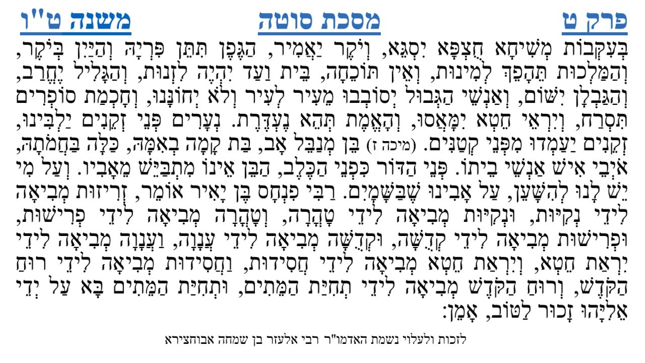 צפייה ישירה ב-YouTubeמסכת סוטה פרק ט משנה ט"ו