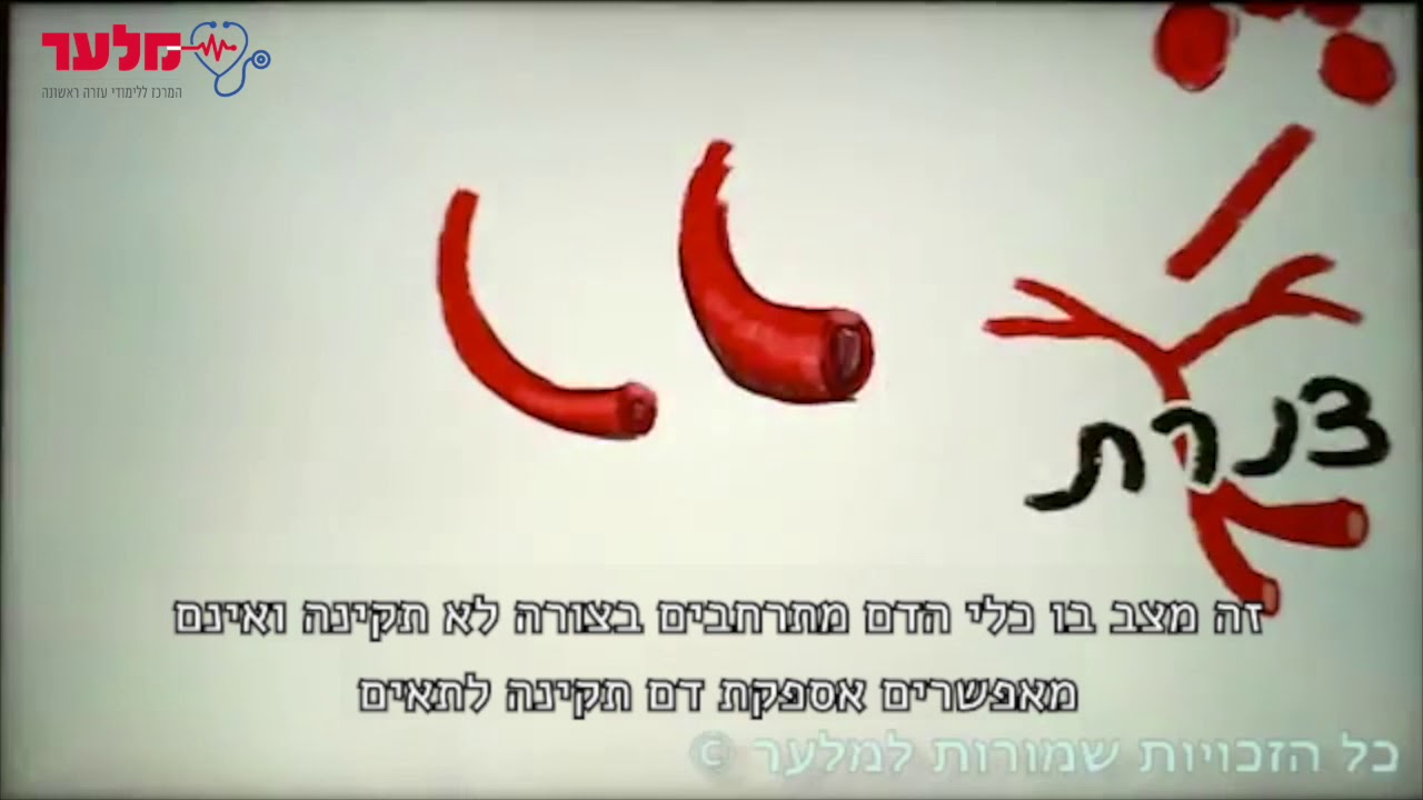 הלם | מלער קורס ערה ראשונה כל הזכויות שמורות למלער - מרכז לימודי עזרה ראשונה סרטון זה נוצר ע"י מארק בורשטיין הלם מוגדר כירידה באספקת הדם לרקמות הגוף. כלומר, לתאי הגוף לא מגיע מספיק דם המספק את האנרגיה הנחוצה. הסימנים שנראה במצב של הלם הם דופק ונשימה גבוהים, לחץ דם נמוך, ועור חיוור וקר. ככל שההלם יהיה חמור יותר כך גם הסימנים יהיו חמורים יותר. ישנם כמה בעיות שיגרמו להלם- בעיה בכמות הדם בגוף בעיה בקוטר כלי הדם בעיה בלב נתחיל עם הבעיה ראשונה, שהוא גם הנפוץ ביותר, הלם זה נקרא היפוולמי, והוא מתרחש בעקבות ירידה בנפח נוזל הדם בגוף, כתוצאה מהתייבשות קשה או דימום. במקרה זה נרצה להחזיר למטופל נוזלים וזה יקרה באמצעות החזר נוזלים בעירוי, ושתיה אם אפשר. סוג ההלם השני נגרם כבעיה בקוטר כלי הדם. זהו מצב בו כלי הדם מתרחבים בצורה לא תקינה ואינם מאפשרים אספקת דם תקינה לתאים. ישנם 3 סוגי הלם המאופיינים בבעיה זו. הראשון שבהם הוא הלם אנאפילקתי, שנגרם כתוצאה מתגובה אלרגית חריפה וגורמת להרחבת כללית של כלי הדם. לרוב בהלם מסוג זה נראה נפיחות. השני שבהם הוא הלם ספטי, זיהומי. הוא נגרם מהרחבת כלי דם כתוצאה מזיהום, ולעיתים יהיה מלווה גם בחום גבוהה. השלישי הוא הלם עצבי (נוירגני), הלם זה ייגרם כתוצאה מפגיעה בראש או בחוט השדרה שיגרום להפרעה בעצבוב כלי הדם. כלי הדם ממקום הפגיעה ומטה יתרחבו. ולחץ הדם ירד ויזרום בצורה לא תקינה. לכן אנחנו נראה נפיחות ממקום הפגיעה ומטה, והאטת קצב הלב. הסוג האחרון של הלם נובע מבעיה בלב. הלם זה נקרא הלם קרדיוגני. פגיעה בבריאות התקינה של הלב תגרום להפרעה באספקה תקינה של הדם לגוף. הלם זה עלול להגרם מקונטוזיה לבבית, אוטם בשריר הלב, הפרעות קצב חזה אויר בלחץ וכו׳. הסימן המזהה של הלם מסוג זה הוא גודש ורידי צוואר. הטיפול הוא משתנה לפי סוג ההלם אבל תמיד יתבצע פינוי לביה״ח.