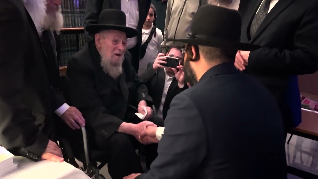 הרב שקד בוהדנה מעניק לגאון הינוקא את הספרים שלו