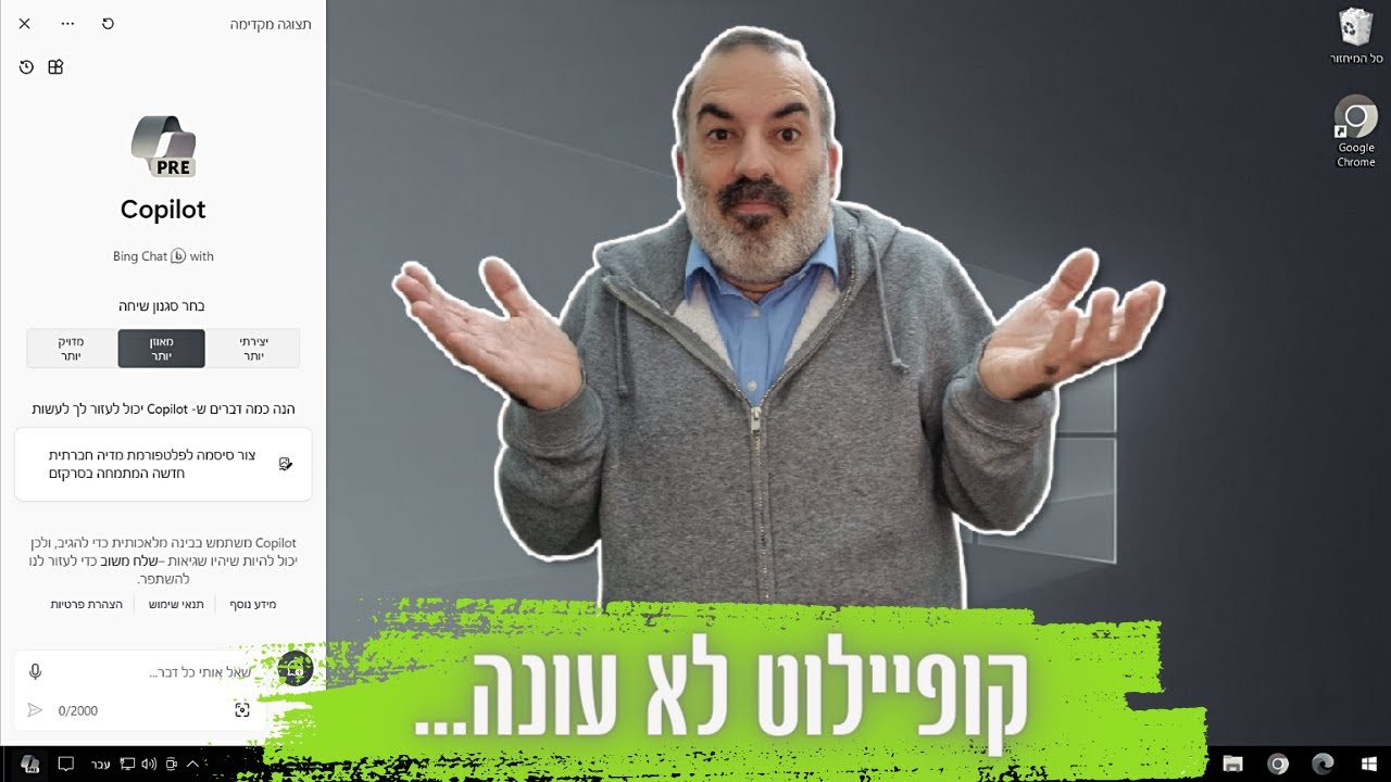 למי שראה את הסרטון שלי על התקנת קופיילוט על ווינדוס 10, ראה בסוף שקופיילוט לא ענה לי ליצירת תמונה. גם על ווינדוס 11 שלי. אז חשבתי שזו תקלה זמנית בצד של מיקרוסופט ועזבתי את זה. אבל למחרת התקלה הזו נמשכה. אז החלטתי להיכנס לעובי הקורה ולנסות לפתור את התקלה הזו. במקום להראות לכם מיד מה פתר לי את הבעיה בסופו של דבר, אני מראה את כל הדרך שאני עושה. אולי זה יעזור לכם להבין את הצורה בה אני חושב, את הדרך שבה החלטתי ללכת עם נסיונות התיקון השונים. הכל אותנטי. מקווה שתלמדו משהו גם מהנסיונות השונים בדרך... ---- 🔻 איפה אפשר למצוא אותי🔻 דיסקורד: https://discord.gg/AjMTSdvfQd קבוצת דיון בטלגרם: https://t.me/MyTechDeskGroup קבוצת פייסבוק: https://www.facebook.com/groups/mytechdesk 🔻דרכים לתמיכה בערוץ🔻 קנו לי כוס קפה (או כמה כוסות): https://bit.ly/3edwdEb תרומה דרך פייפאל: https://bit.ly/3SCaPYa תרומה דרך סטרים אלמנטס: https://bit.ly/3Cd88Wb 🔻עמלה קטנה לערוץ אם תקנו באתרים דרך הלינקים האלה🔻 KSP: https://ksp.co.il/item/F9819AX&homepage Amazon: https://amzn.to/2HNmeoA Ali Express: https://bit.ly/3jXLTJq Banggood: https://bit.ly/3jRjmFr הבהרה: כל המוצג בסרטון הינו לטובת הדרכה בלבד. אינני נושא באחריות לכל מקרה של תקלה, וירוס, באג, שבר או כל בעיה אחרת שתיגרם בעקבות נסיון לחקות את פעולות המציג. בנוסף, התוכנות המוצגות בערוץ אינן שייכות למציג ואין לו חלק בכתיבת הקוד שלהן ועל כן אין לו אחריות על כל תקלה שתיגרם בעקבות השימוש בהן. על כן, חלה חובה על המשתמש לבדוק בעצמו את כל הפעולות לפני עשייתן ואין לבוא למציג בטענה כלשהי מעצם ביצוע פעולה בעקבות הסרטון. #MyTechDESK