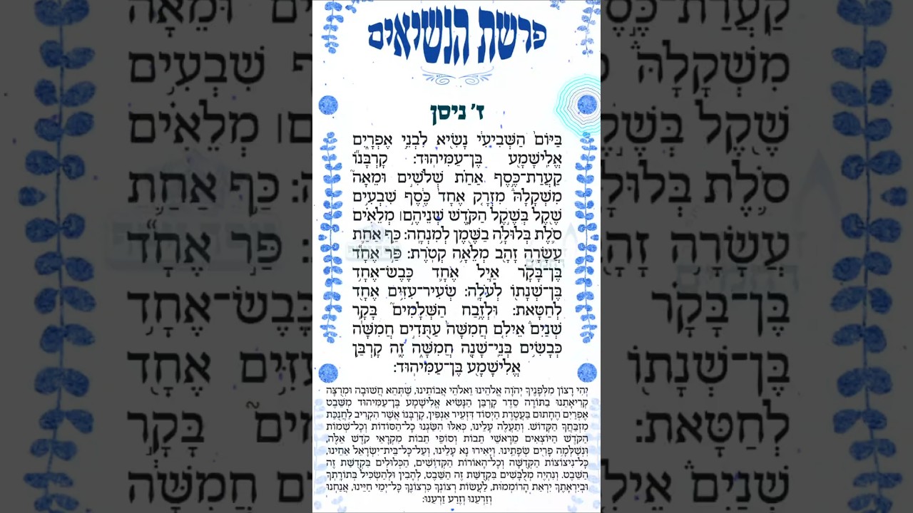 פרשת הנשיאים ליום ז' בניסן (25/03/2026) - קריאה קצרה של דקות בודדות חבל לפספס💛 הפיצו🔥 #news