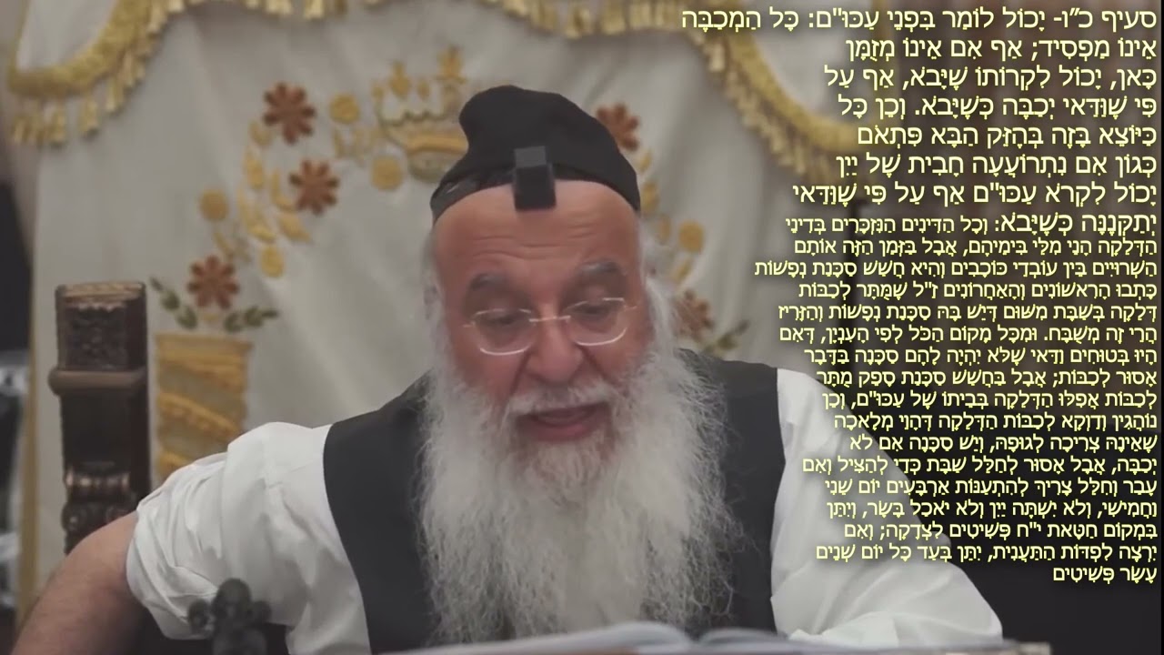 618הלכה יומית של"ד- דיני דלקה בשבת סעיף כד-כז סימן של"ה- דין חבית שנשברה (סעיף א-ב) הרב בניהו שמואלי