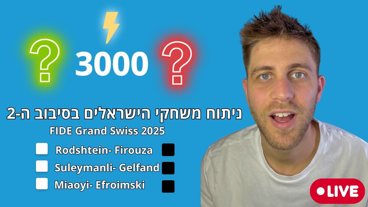 שידור חי! נצפה בלייב בשחקנים ישראלים בתחרות הגרנד פרי 2025- שני המקומות הראשונים בכל תחרות יעלה למועמדים לקראת תואר אלוף העולם! ננתח את המשחקים בעיקר של הישראלים שלנו, רב אמן וסגן אלוף העולם לשעבר בוריס גלפנד, שחקן ההווה, העתיד והעבר, הבלתי מנוצח שלנו רב אמן מקסים רודשטיין, השחקנית הטובה ביותר אי פעם בהיסטוריה של ישראל, אמנית בינלאומית מרסל אפרוימסקי. ניפגש! אל תשכחו לפרגן בלייק ולהירשם כמנויים לערוץ אם אהבתם את התכנים. 🎓 לימוד שחמט בכיף לילדים: 🔹https://www.chessworld.io/ 🔹אייפון: https://apps.apple.com/us/app/chessworld-chess-for-kids/id1112656776 🔹אנדרואיד: https://play.google.com/store/apps/details?id=com.altermanchess.AltermanChessEdu 🎁 קוד קופון בלעדי: קבלו 20% הנחה על רכישת מנוי מתקדם באפליקציה הקוד: nitzan2025 ,בתוקף עד ה־30.9 הירשמו בחינם לאתר שידהים אותכם! באמצעותו תוכלו ללמוד פתיחות, לשנן וריאנטים, לשפר את הזיכרון ולהשתפר בשחמט ופשוט לנצח. https://www.chessshare.com/# ♟️ הירשמו ל-Outpost – הבית החדש לשחקני שחמט: https://outpostchess.com/?utm_source=YouTube&utm_medium=Nitzan אימייל לשליחת משחקים עבור נחש את מד הכושר ונחש את הערכת העמדה! nitzan.steinberg18@gmail.com 🎯 הצטרפו עכשיו לקבוצת הליצ'ס של הקהילה! 🏆 תחרויות, פרסים, ועוד הפתעות! 🔗 https://lichess.org/team/DR3Y5DS6 | סיסמה: 2025! 💙 נהנים מהתכנים שלי? אפשר לתמוך כאן: https://www.paypal.me/NitzanSteinbergChess 📱 הרשתות החברתיות שלי: 🔹 אינסטגרם: https://www.instagram.com/nitzan_steinberg_/ 🔹 טוויץ': https://www.twitch.tv/nitzansteinbergchess 🔹 פייסבוק: https://www.facebook.com/nitzan.steinberg 🔹 דיסקורד: https://discord.com/invite/t8Anrz5VpM 🔹טוויטר: https://twitter.com/SteinbergNitza1 🔹ערוץ יוטיוב באנגלית: https://www.youtube.com/@UCOPwWRP_SvWb7r6pnfs41Ww 🔹לינקדין: https://www.linkedin.com/in/nitzan-steinberg-a62112217/ 💬 קבוצת וואטסאפ פתוחה: 🔹https://chat.whatsapp.com/EdTr2ZCClu1HX9HHEpEhsx ♟️ פרופילים אישיים שחמט 🔹פידה: https://ratings.fide.com/profile/2801795 🔹בצ'ס קום: https://www.chess.com/member/nitzan_steinberg 🔹בליצ'ס: https://lichess.org/@/Nizi3