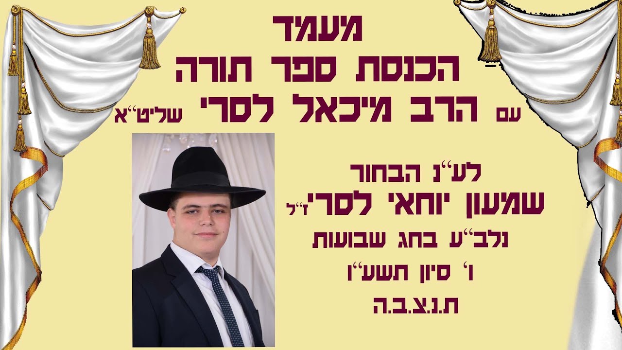 מעמד אדיר והכנסת ספר תורה עם הרב מיכאל לסרי שליט''א לע''נ בני שמעון יוחאי לסרי ז''ל