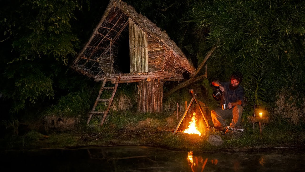 צפייה ישירה ב-YouTubeSolo Overnight in Wood shelter | Survival Fishing with Bamboo Rod