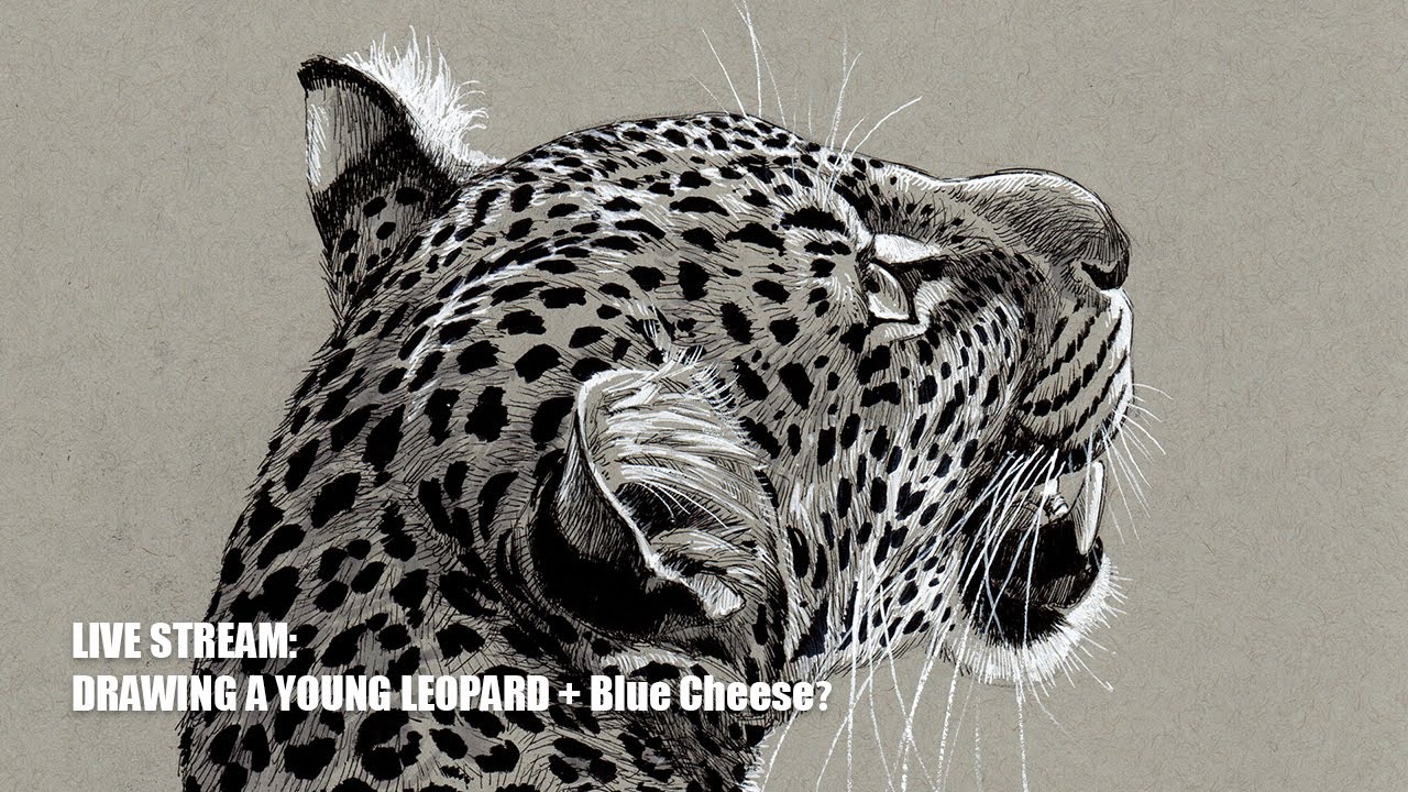 Live Stream - Pen & Ink Drawing of a young Leopard (the Blue Cheese Stream!)