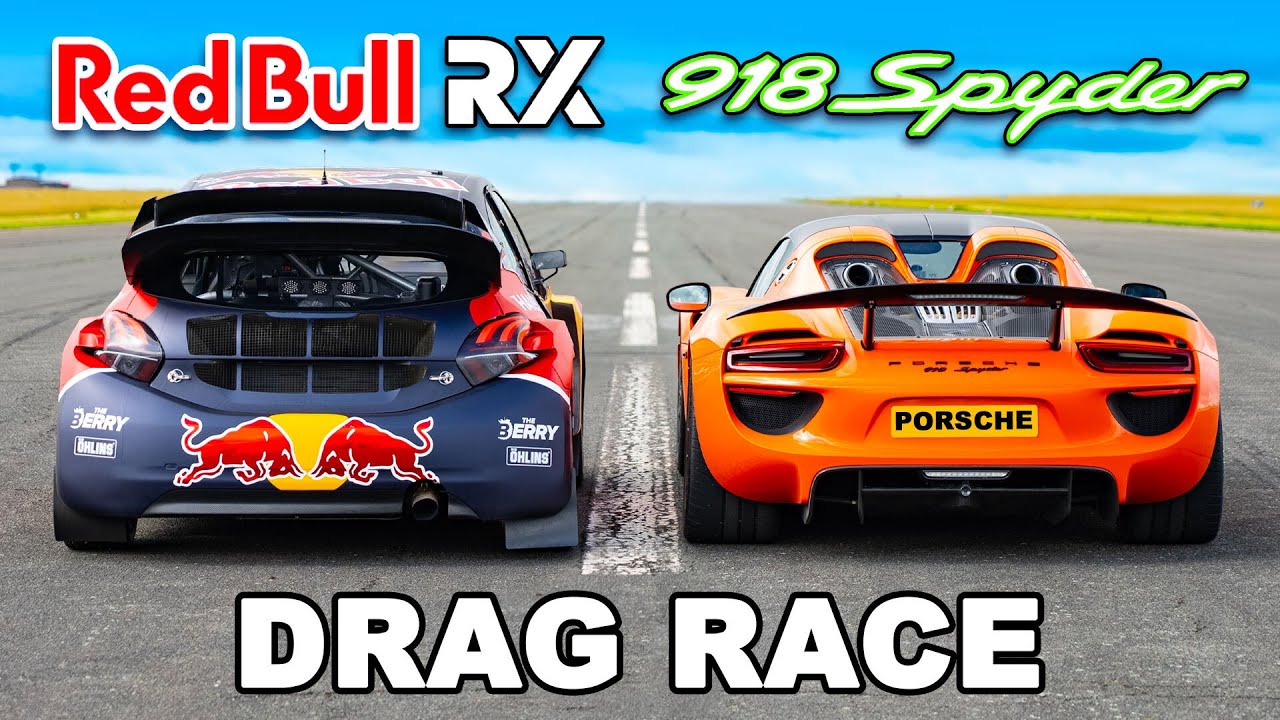 Thanks to everyone who helped organise this drag race: - Porsche 918 Spyder: @wam_barn - WRX: @RedBullMotorsports - WRX: https://www.instagram.com/redbulluk/ - WRX: https://www.instagram.com/timmy_hansen/ It’s time for the almighty Porsche 918 Spyder to face off against a Red Bull WRX Rallycross car! Let’s see how these two mighty machines compare. Starting with the Porsche, it’s powered by a 4.6-litre naturally-aspirated V8, coupled with two electric motors, which combined produce an incredible 887hp and 1,280Nm of torque! It’s relatively heavy though, tipping the scales at 1,674kg, and if you’re looking to pick up one of these in 2023, it’ll set you back a cool £1,300,000!! Then we have the WRX rallycross car. It’s based on a Peugeot 208 rally car, and it’s powered by a 2-litre turbocharged engine that can produce 620hp. And as you’d expect, all this power is sent to all four wheels. So the WRX will be lightning-fast off the line, but will it be able to take down the 918 over the quarter-mile? There’s only one way to find out… LET’S RACE! Red Bull Ultimate Drag Race: https://youtu.be/ADs8tvU2xDc Sell your car with carwow: https://bit.ly/Buy-Sell-WOW