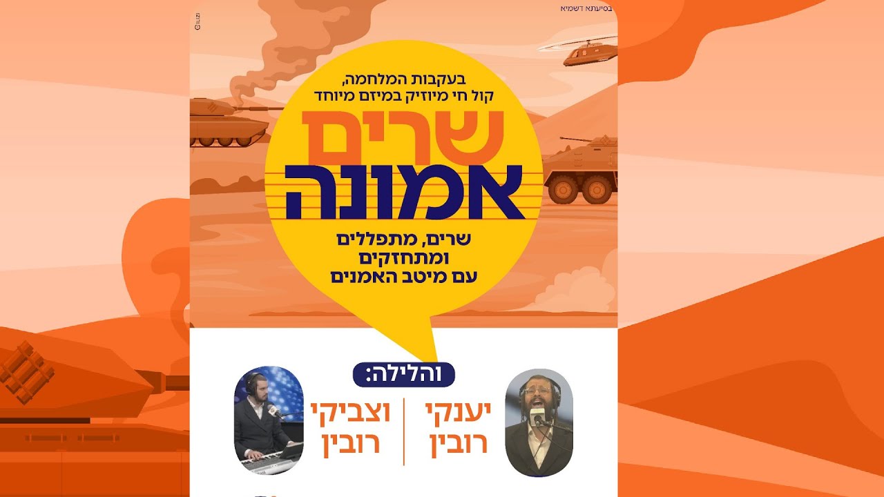 בעקבות המלחמה, קול חי מיוזיק במיזם מוזיקלי מחזק - 'שרים אמונה'. גדולי הזמרים והאמנים מגיעים לחזק אתכם במופע חי באולפן בשירי אמונה, תפילה ותקווה. והלילה: האב ובנו - יענקי וצביקי רובין השידור יחל בשעה 22:00