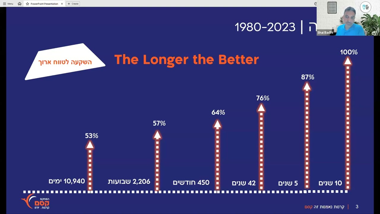 השקעה ב-S&P 500 לטווחי זמן ארוכים אנחנו מכירים, אבל מה קורה אם אנחנו רוצים להשקיע לטווחי ביניים, קצרים יותר, ורוצים לקבל הגנה מסוימת מפני ירידות? 🤔 אנחנו מדברים כל הזמן על השקעה לטווח ארוך במדדים - על היתרונות והחסרונות *(הרחבנו בפרקים 160, 125 ופרקים נוספים בפודקאסט שלנו "ידע שווה כסף" למי שמעוניין להתעמק) לאחרונה צצים בשוק כל מיני מוצרים של "השקעה ב-S&P 500 עם הגנות מפני ירידות" כמו שאנחנו מסבירים ואומרים תמיד - אין קסמים בעולם ההשקעות בכלל ושוק ההון בפרט :) 🧙♂ אם יש הגנות, זה צריך לבוא על חשבון משהו אחר (רמז - תשואה). אז החלטנו להרים את הכפפה ולעשות וובינר מקצועי ופרקטי כדי להסביר לכם איך לעזאזל זה עובד?! מה היה לנו בוובינר? * היתרונות בהשקעה במדדי מניות לטווח הארוך + הסיכונים הקיימים בטווח הקצר (פסיכולוגית המשקיע) * ביטוח תיק השקעות – כמעט כולם עושים ביטוח רכב אך מעט מאוד משקיעים מבטחים את תיק ההשקעות להם – מדוע? * מבוא לעולם האופציות המאפשרות להגן על תיק ההשקעות * דוגמה לאסטרטגיית הגנה על מדד – S&P 500 * הצגת קרן באפר של "קסם" המאפשרת חשיפה למדד ה- S&P 500 יחד עם הגנה מפני ירידות * האותיות הקטנות שחשוב לשים לב אליהן * שאלות שלכם ב-Live המידע המוצג מסופק כשירות למטרות מידע בלבד ואינו מהווה תחליף לייעוץ השקעות או שיווק השקעות המתחשב בנתונים ובצרכים של כל אדם. המפגש הועבר על ידי מרצה לצורך הצגת הנושאים המפורטים בו ונועד למטרות לימוד והיכרות ראשונית בלבד בנושאים שהוצגו. אין לראות באמור מידע שלם וממצה של כל ההיבטים הכרוכים בנושא. לחברות מקבוצת הפניקס וקסם עשוי להיות עניין במידע המוצג ראו לשונית גילוי נאות באתר החברה בכתובת www.xnes.co.il. המידע האמור מבוסס על הנחות ועשוי להשתנות מעת לעת. במידע עשויים ליפול טעויות וכן לחול שינויי שוק. אין לראות באמור הצעה או ייעוץ לרכישה ו/או מכירה ו/או החזקה של ניירות הערך ו/או הנכסים הפיננסים הקשורים למידע המוצג. הנתונים נכונים למועד הפצתם. העברת המסמך או חלקים ממנו לצדדים שלישיים או פרסומם בכל דרך שהיא, ללא קבלת אישור מראש ובכתב הנה אסורה, כל העושה זאת יישא באחריות באשר לכך. אין לבצע כל פעולה על סמך האמור בפגישה ללא קבלת ייעוץ מקצועי הרלוונטי לדעת הלקוח. הסתמכות על המידע אשר יועבר במסגרת המפגש, באחריות הלקוח בלבד וקבוצת הפניקס לא תהיה אחראית לכל נזק ו/או הפסד שיגרמו, ככל שיגרמו, עקב ביצוע פעולה כלשהי בהסתמך על הנאמר במפגש או שלא נאמר בו. אם אתם עדיין איכשהו לא חברים שלנו בפייסבוק - https://bit.ly/kvutza2 לכל ההטבות של חברי הקהילה - http://bit.ly/YedaBenefits * כתבות, מאמרים וטיפים ששווים לך כסף * כלים ומחשבונים פיננסים - מחשבון ריבית דריבית כולל הפקדה חודשית, מחשבון עצמאות כלכלית ועוד... * הטבות בלעדיות לחברי הקהילה! רוצים לקבל עדכונים על ההטבות הבלעדיות של חברי הקהילה? הוובינרים המיוחדים וכל הדברים השווים שאנחנו מארגנים? אפשר לעקוב דרך: 1. מייל (ניוזלטר) - https://yedashavekesef.ravpage.co.il/... 2. קבוצת הטלגרם שלנו (ללא חפירות, עדכונים בלבד) - https://t.me/Yeda_Shave_Kesef 3. האתר שלנו "התנ"ך של עולם הפיננסים", האתר ששווה לכם כסף. כאן תוכלו למצוא תוכן פיננסי מעשיר וחשוב בגובה העיניים. בנוסף תוכלו למצוא את כל ההטבות השוות והבלעדיות לחברי הקהילה שלנו, הקורסים המיוחדים שלנו ועוד - https://yeda-kesef.co.il/ רוצים לדבר איתנו? יש לכם רעיון? משהו שתרצו שנדבר עליו? הערות? סייגים? מוזמנים לפנות אלינו בדף הרשמי של הקבוצה - https://bit.ly/dafrishmi