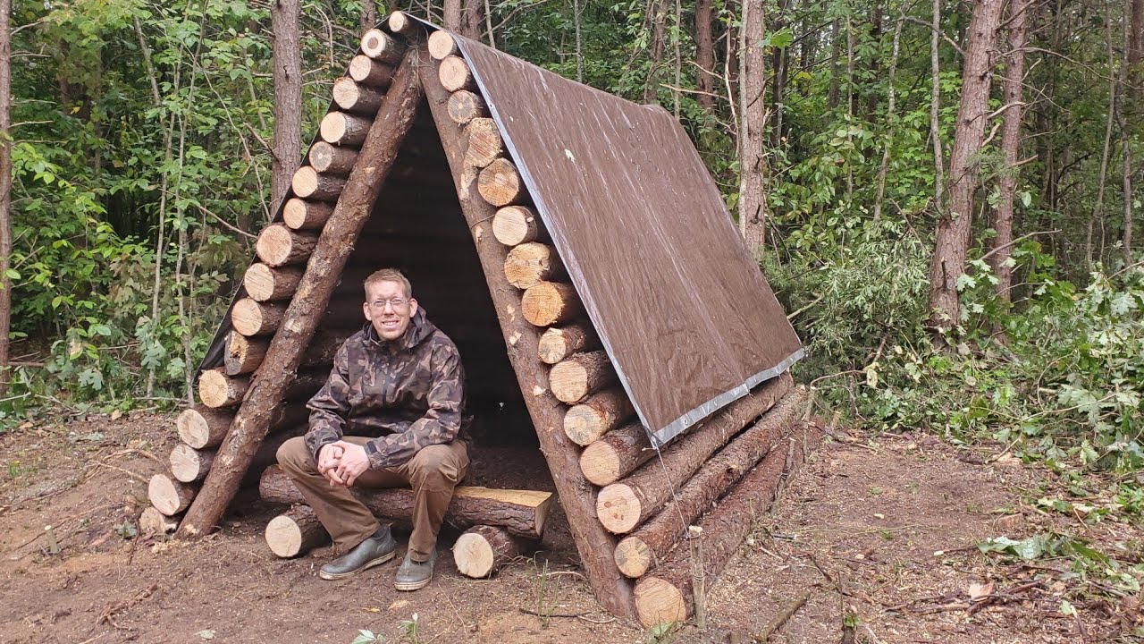 צפייה ישירה ב-YouTubeStorm Destroyed the Forest - Building a Bushcraft Shelter & Camping 3 Days