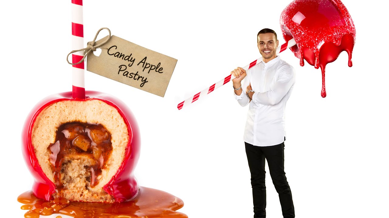 This project was inspired by the iconic candied apple, taken to an oversized scale. I created a giant sugar-candied apple with a glossy red finish, then paired it with individual pastries in disguise, displayed all around it. Each candied apple pastry hides layers of apple cider infused vanilla soft caramel, slowly caramelised apple compote, and a moist cinnamon almond sponge, finished with a crunchy cinnamon streusel at the base. The entire piece is dipped in an ultra-thin, crunchy red chocolate shell and coated with a glossy red glaze to recreate the perfect candied-apple snap. To complete the illusion, I finished each one with a double-color chocolate stick (my favorite detail of the project). Would you want to try one of these candied apples? 🍎🍫