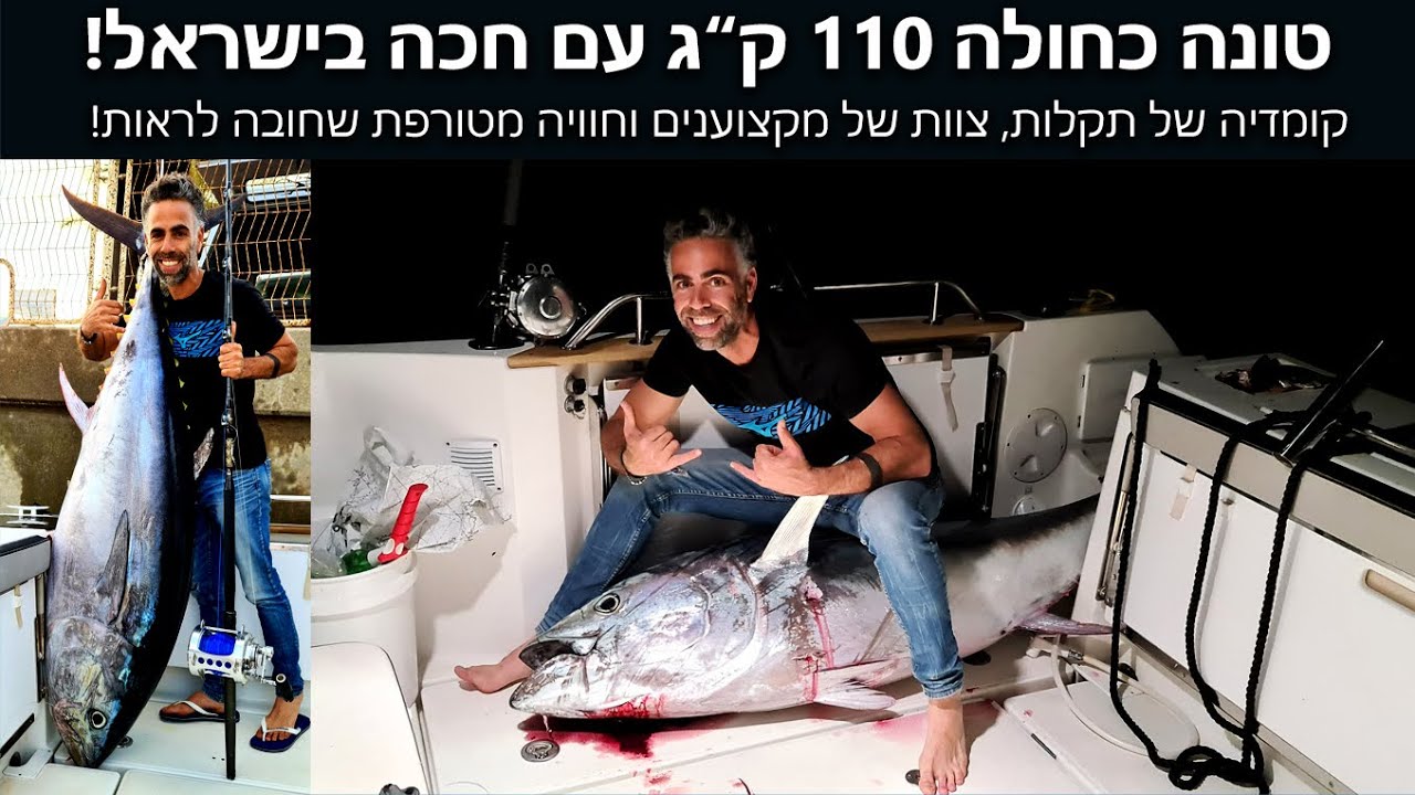 דייג טונה כחולה 110 ק"ג עם חכה בישראל! 110 Bluefin tuna fishing in Israel