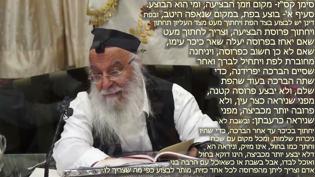 265הלכה יומית סימן קסו- דין הפסק בין בציעה לנטילה סימן סקז-מקום וזמן הבציעה ומי הבוצע סעיף א-ה