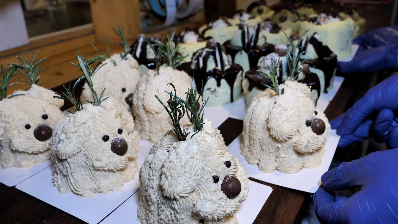 צפייה ישירה ב-YouTube초코빵이 들어간! 귀여운 강아지 모양 수제케이크와 다양한 케익 만들기 making dog shaped fresh cream cake - korean street food