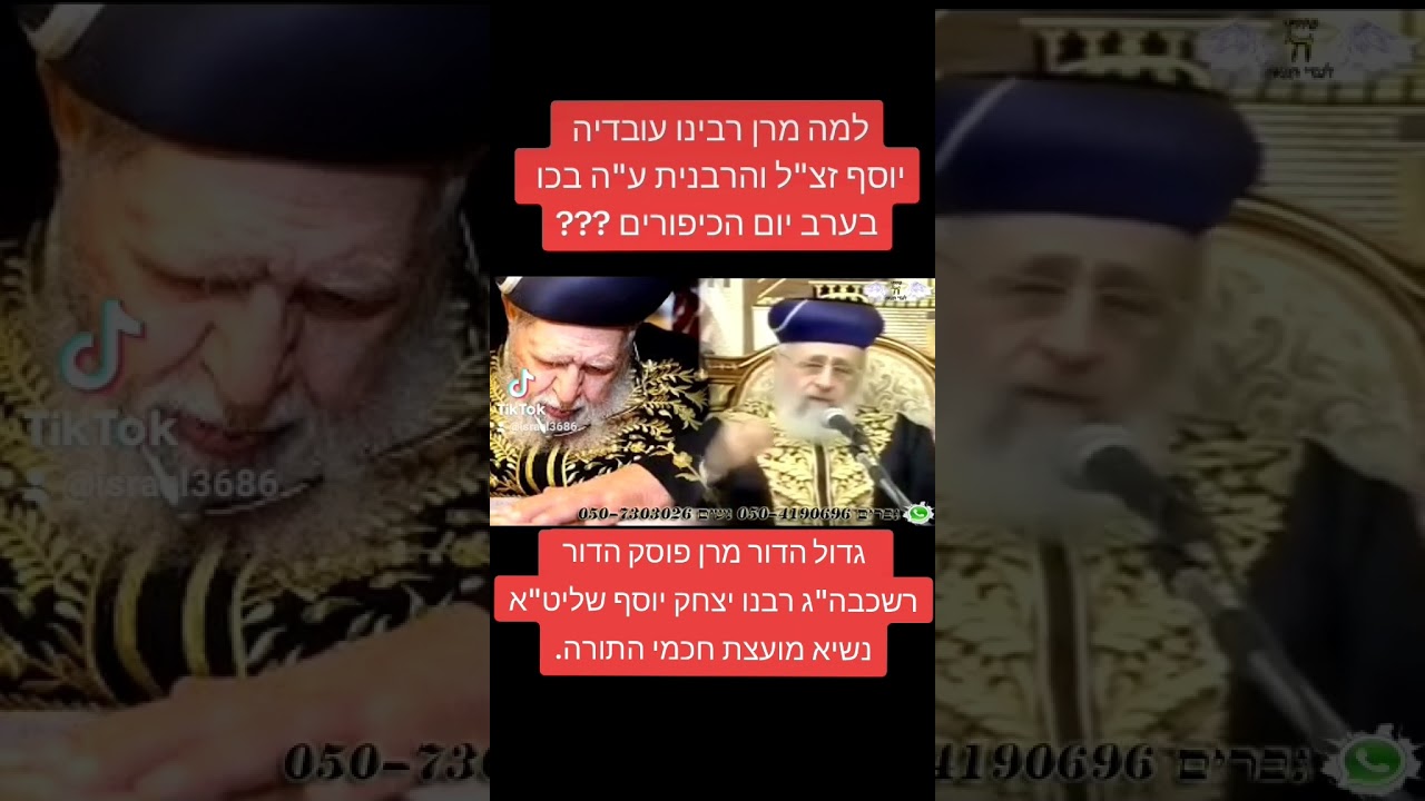 צפייה ישירה ב-YouTubeלמה מרן רבינו עובדיה יוסף זצ"ל והרבנית ע"ה בכו בערב יום הכיפורים? מרן רשכבה"ג רבנו יצחק יוסף שליט"א.