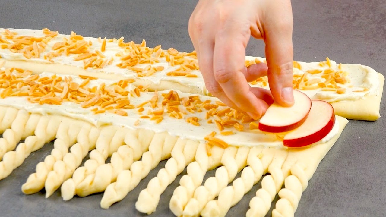 Sweet Apple Spiral Braid Bread ⬇️ SCRUMDIDDLYUMPTIOUS RECIPE BELOW ⬇️ Bread has been a kitchen staple for years and years, but being so readily available and commonly used in the kitchen can also make bread a bit boring. Eating the same old bread-based meals over and over definitely gets repetitive after a while. Luckily, when you bake it yourself, there are so many variations you can put on bread that it's easy to get back the magic of that freshly baked loaf! This recipe for sweet spiral braid bread is the perfect way to breathe some new life into your everyday bread routine. From its gorgeous braided design to its sweet vanilla cream cheese & spiced apple filling, this spiral braid bread will impress anyone who tries it. Whenever you choose to serve it, this bread is bound to rise to the occasion! 📌 FULL RECIPE: https://www.scrumdiddlyumptious.com/apple-spiral-braid-bread/ ➡️ Thanks for watching and don't forget to subscribe for a first-hand look at all our best recipes and cooking hacks: www.youtube.com/scrumdiddlyumptious ****************************************************** Yield: 1 Prep time: 70 minutes Cooking Time: 50 minutes Inactive Time: 130 minutes Difficulty Level: Moderate You'll Need: For the yeast dough: - 1 cup water, lukewarm - 2 tsp dry yeast - ¼ cup sugar - 4 cups flour - ½ cup corn meal - 1 tsp salt - 3 tbsp vegetable oil - 1 whisked egg for the egg wash For the cream cheese filling: - ⅔ cup cream cheese - 1 vanilla bean pod - 2 tbsp sugar For the spiced apple filling: - 2–3 red apples, sliced - ⅔ cup slivered almonds, toasted - cinnamon sugar This gorgeous spiral braid bread looks incredible, but the real highlight is its delicious cream cheese & apple filling. You won't be able to keep your hands off of it! Get the recipe for the Apple Dumpling Pull-Apart Bread featured in the bonus video: https://youtu.be/ee22eH-UtQE ****************************************************** Do you want to see more content like this? Scrumdiddlyumptious brings you unique recipes & cooking hacks every day, so be sure to subscribe, like, and follow us for a first-hand look at new videos that you can share with your family & friends! 💚 YouTube: https://www.youtube.com/scrumdiddlyumptious 💚 Facebook: https://www.facebook.com/scrumdiddlyumptiouscom 💚 Instagram: https://www.instagram.com/scrumdiddlyumptious_recipes 💚 Pinterest: https://www.pinterest.com/scrumdiddlyumptious 💚 Website: https://www.scrumdiddlyumptious.com ****************************************************** Introducing our BRAND NEW COOKBOOK! 📕😍 🇺🇸 Available in the US: https://www.amazon.com/dp/3982168872/ 🇪🇺 And in the EU: https://amzn.to/32DYdLp