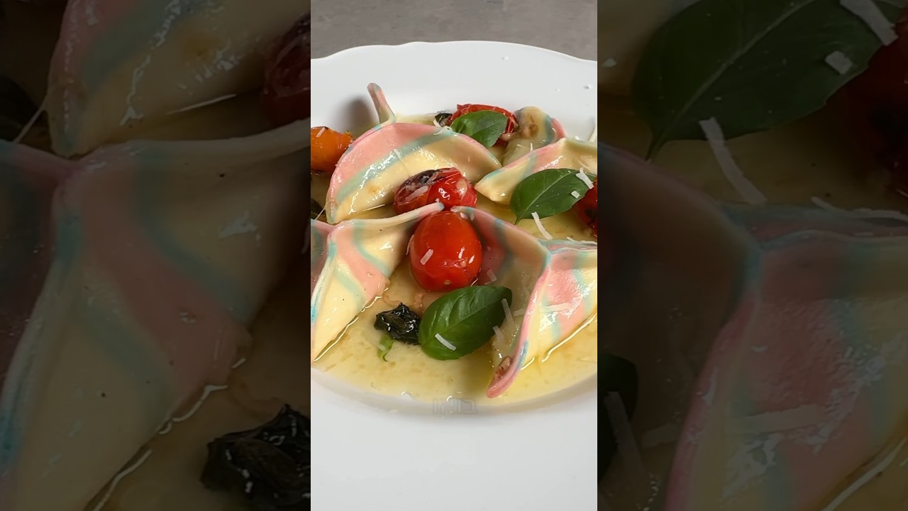 רביולי גבינות אוזן המן צבעוני ברוטב חמאה עגבניות שום ובזיליקום #יאבלולושמבלולו #מתכונים