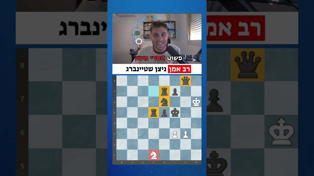 תרגיל מטורף לחלוטין בשחמט!!! חושבים שאתם מסוגלים לפתור? תעצרו את הסרטון ותעדכנו בתגובות את הפיתרון שמצאתם! בסרטון שלפניכם, אני מסביר צעד אחרי צעד איך פותרים את התרגיל הזה, את כל הטקטיקות, החישובים והאסטרטגיה. מצטרפים לערוץ ומקבלים גישה להטבות: https://www.youtube.com/channel/UC-Me-DVb2wlGauHEbFdR79Q/join 🎓 לימוד שחמט בכיף לילדים: 🔹https://www.chessworld.io/ 🔹אייפון: https://apps.apple.com/us/app/chessworld-chess-for-kids/id1112656776 🔹אנדרואיד: https://play.google.com/store/apps/details?id=com.altermanchess.AltermanChessEdu 🎁 קוד קופון בלעדי: קבלו 20% הנחה על רכישת מנוי מתקדם באפליקציה הקוד: nitzan2025 ,בתוקף עד ה־30.9 הירשמו בחינם לאתר שידהים אותכם! באמצעותו תוכלו ללמוד פתיחות, לשנן וריאנטים, לשפר את הזיכרון ולהשתפר בשחמט ופשוט לנצח. https://www.chessshare.com/# ♟️ הירשמו ל-Outpost – הבית החדש לשחקני שחמט: https://outpostchess.com/?utm_source=YouTube&utm_medium=Nitzan אימייל לשליחת משחקים עבור נחש את מד הכושר ונחש את הערכת העמדה! nitzan.steinberg18@gmail.com 🎯 הצטרפו עכשיו לקבוצת הליצ'ס של הקהילה! 🏆 תחרויות, פרסים, ועוד הפתעות! 🔗 https://lichess.org/team/DR3Y5DS6 | סיסמה: 2025! 💙 נהנים מהתכנים שלי? אפשר לתמוך כאן: https://www.paypal.me/NitzanSteinbergChess 📱 הרשתות החברתיות שלי: 🔹 אינסטגרם: https://www.instagram.com/nitzan_steinberg_/ 🔹 טוויץ': https://www.twitch.tv/nitzansteinbergchess 🔹 פייסבוק: https://www.facebook.com/nitzan.steinberg 🔹 דיסקורד: https://discord.com/invite/t8Anrz5VpM 🔹טוויטר: https://twitter.com/SteinbergNitza1 🔹ערוץ יוטיוב באנגלית: https://www.youtube.com/@UCOPwWRP_SvWb7r6pnfs41Ww 🔹לינקדין: https://www.linkedin.com/in/nitzan-steinberg-a62112217/ 🔹טיקטוק: https://www.tiktok.com/@nitzansteinberg18 💬 קבוצת וואטסאפ פתוחה: 🔹https://chat.whatsapp.com/EdTr2ZCClu1HX9HHEpEhsx ♟️ פרופילים אישיים שחמט 🔹פידה: https://ratings.fide.com/profile/2801795 🔹בצ'ס קום: https://www.chess.com/member/nitzan_steinberg 🔹בליצ'ס: https://lichess.org/@/Nizi3