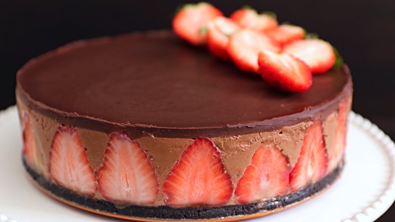 עוגת גבינה שוקולד ותותים ללא אפייה