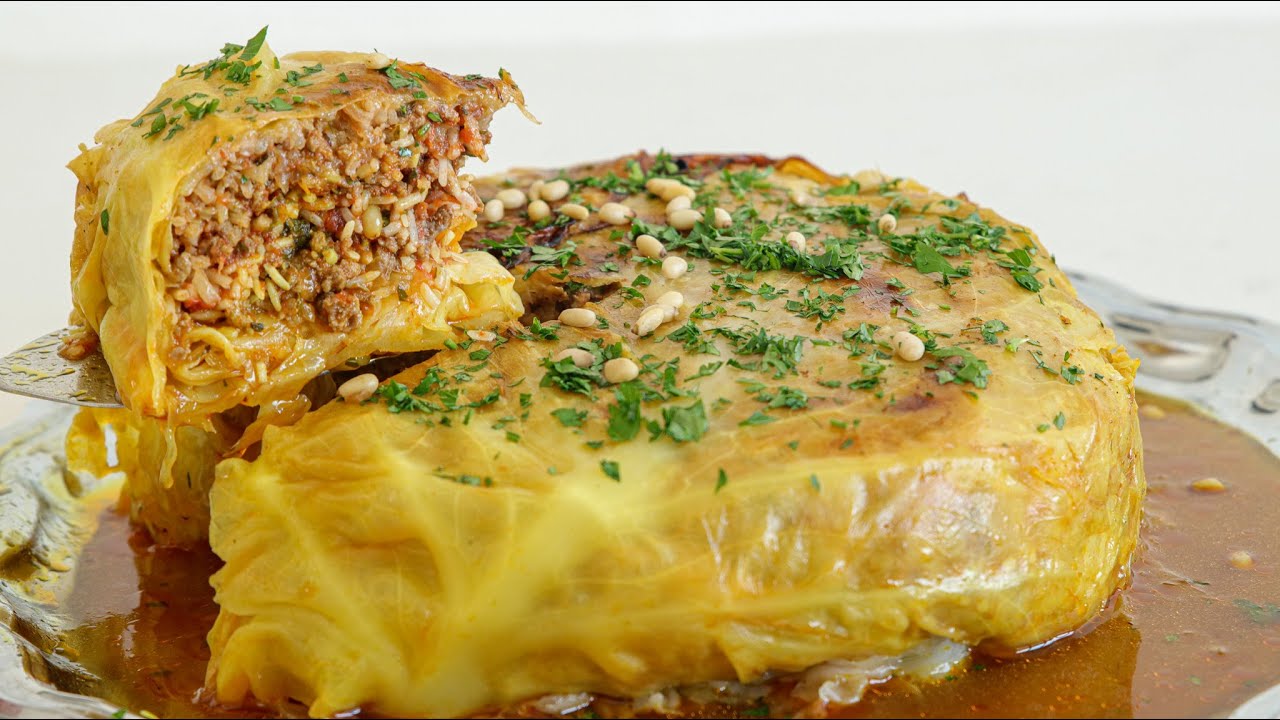 מתכון לעוגת כרוב ממולא – אם נמס לכם מכרוב ממולא רגיל, אתם חייבים לנסות את המתכון הזה. עוגת כרוב מרשימה, יפה, משביעה וטעימה. המתכון הזה לעוגת כרוב יכול להתאים לארוחת חג, לשבת ולכל אירוע חגיגי. מתכון כתוב מלא: https://www.thecookingfoodie.co.il/recipe/%d7%a2%d7%95%d7%92%d7%aa-%d7%9b%d7%a8%d7%95%d7%91-%d7%9e%d7%9e%d7%95%d7%9c%d7%90 הצטרפו אליי: אתר מתכונים בעברית: https://www.thecookingfoodie.co.il/ אינסטגרם: https://www.instagram.com/thecookingfoodie/ פייסבוק: https://www.facebook.com/thecookingfoodie/ הערוץ שלי באנגלית: https://www.youtube.com/c/thecookingfoodie/ אתר אינטרנט באנגלית: https://www.thecookingfoodie.com/ מצרכים: 1 ראש כרוב גדול למילוי: 3 כפות שמן זית 1 בצל, קצוץ 3-4 שיני שום, כתושות 450 גרם בשר בקר טחון מלח לפי הטעם פלפל שחור לפי הטעם 1 כפית כמון 1 כפית כורכום 1 כפית פפריקה 1 קופסה (400 גרם) עגבניות מרוסקות טימין אורגנו 1 כוס אורז, שטוף 1/2 כוס פירות יבשים לבחירה: שזיפים/משמש קצוצים 2 כפות עלי נענע קצוצים 2 כפות פטרוזיליה, קצוצה 1/3 כוס צנוברים לנוזלים: ¾1 כוסות (420 מ"ל) מים 1/4 כוס (60 מ"ל) שמן 2-3 כפות סילאן מלח לפי הטעם פלפל לפי הטעם 1 כפית כורכום הוראות הכנה: 1. מרככים את הכרוב: מחממים מים בסיר גדול. מביאים לרתיחה. מסירים בזהירות את ליבת הכרוב, ואז מוסיפים את הכרוב למים הרותחים ומבשלים 8-10 דקות. מוציאים את הכרוב מהמים ומניחים בצד. 2. מכינים את המילוי: במחבת גדולה מחממים שמן זית, מוסיפים בצל קצוץ ומטגנים עד להזהבה, כ-7-8 דקות. מוסיפים שום כתוש ומטגנים במשך 2-3 דקות. מוסיפים בשר בקר טחון ומבשלים על אש גבוהה, מבשלים עד להשחמה, בערך 6-7 דקות. 3. מוסיפים תבלינים ומערבבים היטב. מוסיפים רוטב עגבניות, טימין, אורגנו ומבשלים 4-5 דקות. מכבים את האש ומעבירים את התערובת לקערה גדולה. 4. לתערובת מוסיפים צנוברים קלויים, פטרוזיליה קצוצה, נענע קצוצה, אורז, פירות יבשים קצוצים ומערבבים היטב. מניחים בצד. 5. הרכבה: מקלפים את עלי הכרוב ומסדרים אותם על תחתית התבנית כפי שמוצג בסרטון. מעבירים את המילוי לתבנית עם עלי הכרוב ומורחים בצורה אחידה. 6. במחבת שבישלתם את הבשר, מוסיפים מים, שמן, סילאן, מלח ופלפל, מחממים עד להמסה. יוצקים 3/4 מהתערובת הנוזלית על תערובת הבשר. 7. לאחר מכן, מכסים את התערובת בעוד עלי כרוב ומקפלים כפי שמוצג בסרטון. יוצקים את שאר הנוזלים על הפאי. 8. מניחים צלחת חסינת חום על גבי הפאי ומבשלים במשך 45 דקות או עד שהאורז מבושל. 9. מכבים את האש, מניחים להתקרר מעט, ואז הופכים על צלחת הגשה גדולה. 10. תהנו מארוחה חגיגית!