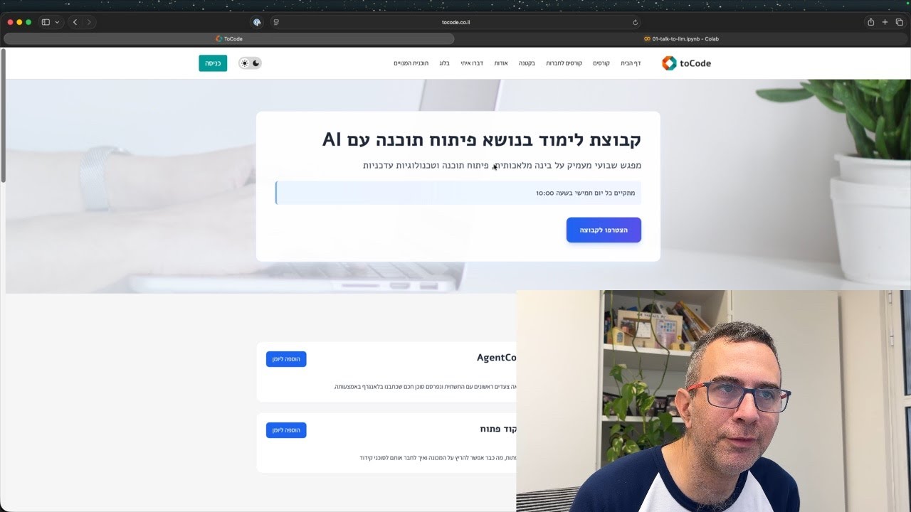 הסבר טקסט מלא על כל הדוגמאות בוידאו: https://www.tocode.co.il/blog/2026-02-langgraph-5-examples קבוצת לימוד AI בימי חמישי https://www.tocode.co.il/talking_ai 00:00 - איך עובד LangGraph 03:00 - מפתח API 05:02 - דוגמה 1 שליחת הודעה לג׳מיני 08:18 - דוגמה 2 מבנה גרף 14:34 - דוגמה 3 עיבוד מקבילי 19:41 - דוגמה 4 חיבור עם תנאים 23:02 - דוגמה 5 סוכן שיחה 34:12 - סיכום