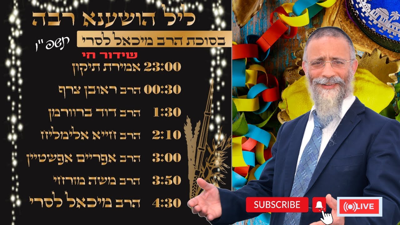 💥ליל הושענא רבה |🔴שידור חי מסוכות של הרב מיכאל לסרי תשפ''ו ( רבנים לאורך כל הלילה ועוד...)