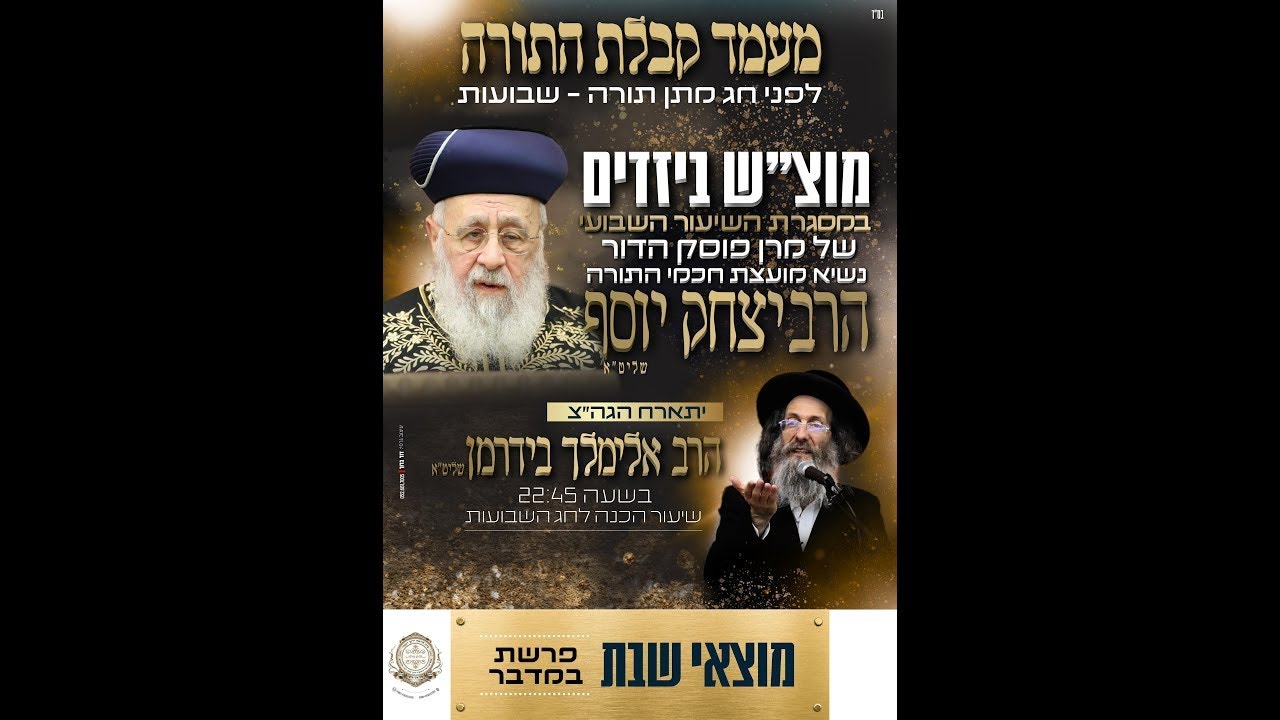 הרב יצחק יוסף הראשון לציון פרשת במדבר הכנה למתן תורה שידור חי תשפ"ה