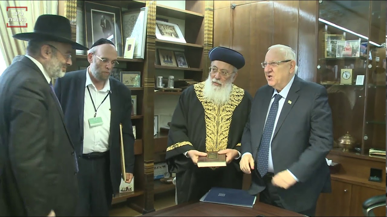 מרן פוסק הדור הראש"ל רבנו שלמה משה עמאר שליט"א במכירת חמץ בבית הנשיא מר ראובן רובי ריבלין