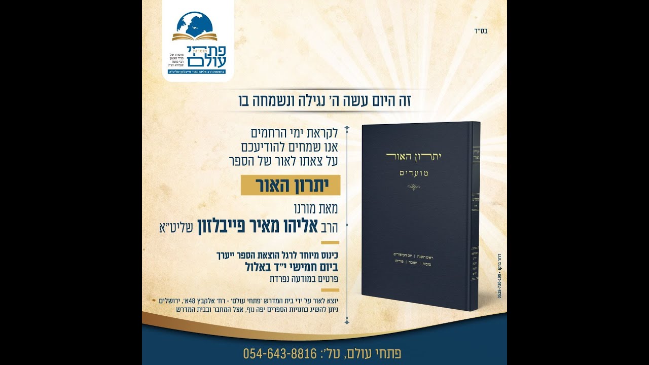 מוסדות פתחי עולם | בראשות מורינו הרב אליהו מאיר פייבלזון שליט"א מיסודו של הגאון ר' משה שפירא זצוק"ל