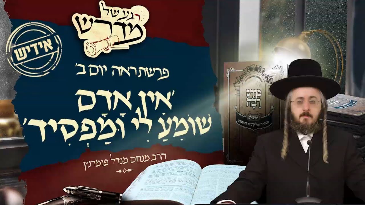 הרב מנחם מנדל פומרנץ | רגע של מדרש -אידיש- יום ב' פרשת ראה • 'אֵין אָדָם שׁוֹמֵעַ לִי וּמַפְסִיד' •