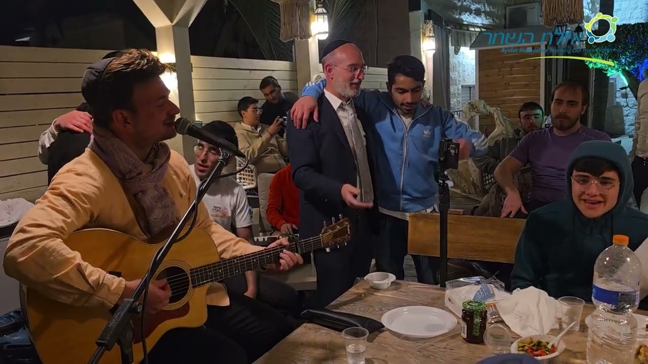 זלמן שטוב בביצוע אהבת עולם בזיץ סוחף עבור צעירי ארגון איילת השחר בפרוייקט תוספת שבת