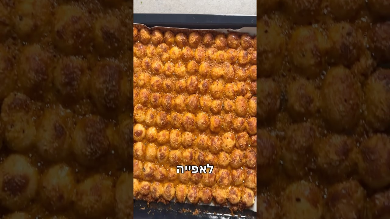 תפחי אדמה אפויים בציפוי פריך שמכינים באפס מאמץ לא תפוחי האדמה הרגילים – אלא גרסה שתמיד מפתיעה. תערובת של פרמזן, פקורינו ופירורי לחם יוצרת קרום קריספי מיוחד. תוספת שגונבת את ההצגה מהמנה העיקרית! מצרכים: - חבילות תפחי אדמה קטנים מבושלים - שמן זית כתית מעולה – לפי הצורך - מלח – לפי הטעם - פלפל שחור – לפי הטעם לתיבול: •30 גרם גבינת פרמזן מגוררת •30 גרם גבינת פקורינו מגוררת •40 גרם פירורי לחם לבנים •5 גרם(כף) פפריקה מעושנת •5 גרם(כף) אבקת שום •20 גרם שמן זית כתית מעולה לפני אפייה: 5 גרם גבינת פרמזן מגוררת 5 גרם פירורי לחם אופן ההכנה: - חוצים את תפוחי האדמה לאורך ומתבלים אותם בשמן זית, מלח ופלפל. - מערבבים את כל מרכיבי התיבול: גבינות, פירורי לחם, פפריקה ואבקת שום. - בתבנית עם נייר אפייה ,שמים את הגבינות פירורי הלחם והתבלינים ומעסים את תחתית התבנית בתערובת התיבול,מניחים את תפוחי האדמה עם הצד החתוך כלפי מטה. - מפזרים מעל את הגבינות הנוספות ופירורי הלחם. - אופים בתנור שחומם מראש ל-220 מעלות חום עליון-תחתון למשך 30 דקות. טיפ: לקראנצ’יות מקסימלית – השאירו את תפוחי האדמה בתנור מכובה ל-5 דקות נוספות לאחר האפייה. פרסום בשיתוף @alumim_farm @foody_israel #תפוחאדמה #תפוחיאדמהבתנור #תפוחיאדמהקריספיים