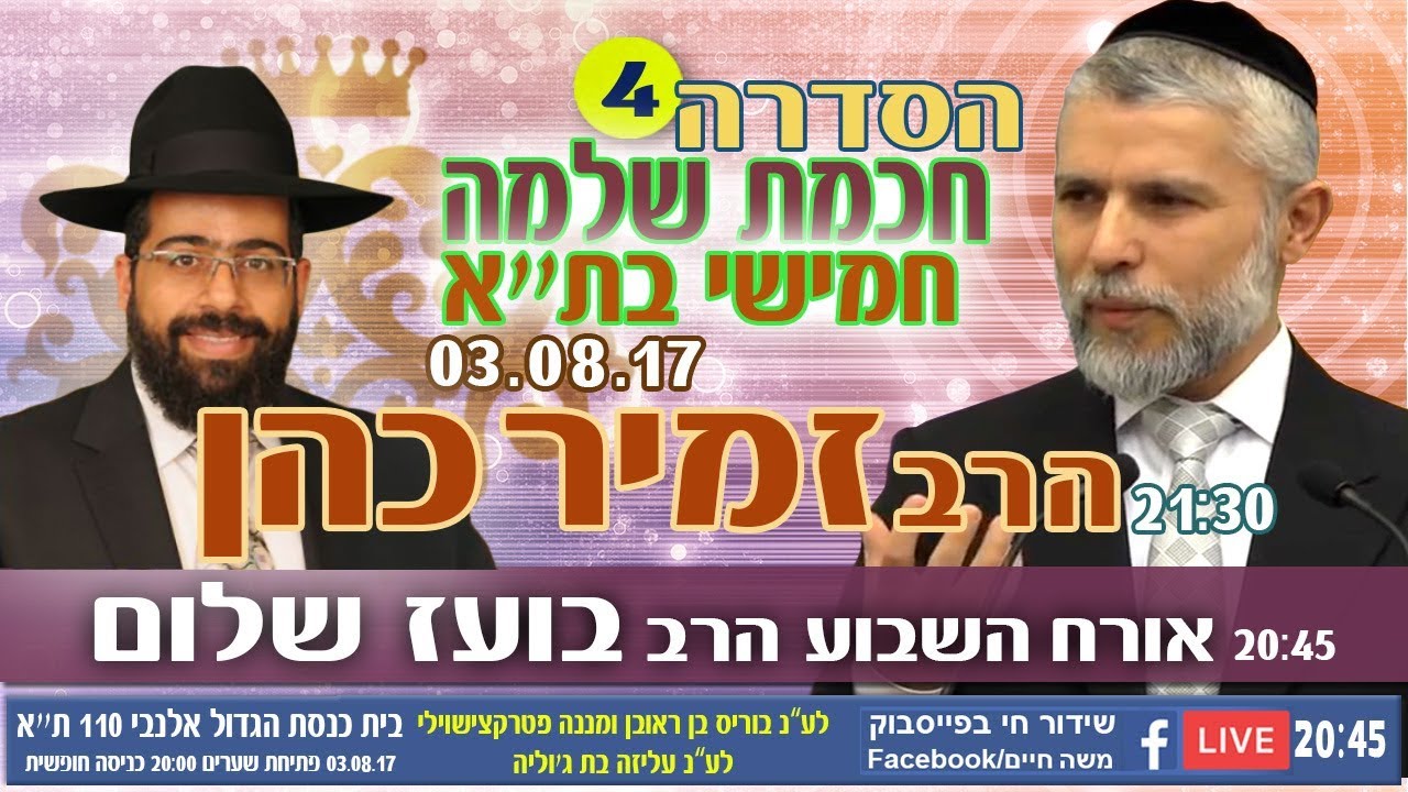 צפייה ישירה ב-YouTubeשידור חוזר: הרב זמיר כהן - הדרך לחיים טובים מתוך חכמת שלמה המלך - חלק 4 HD