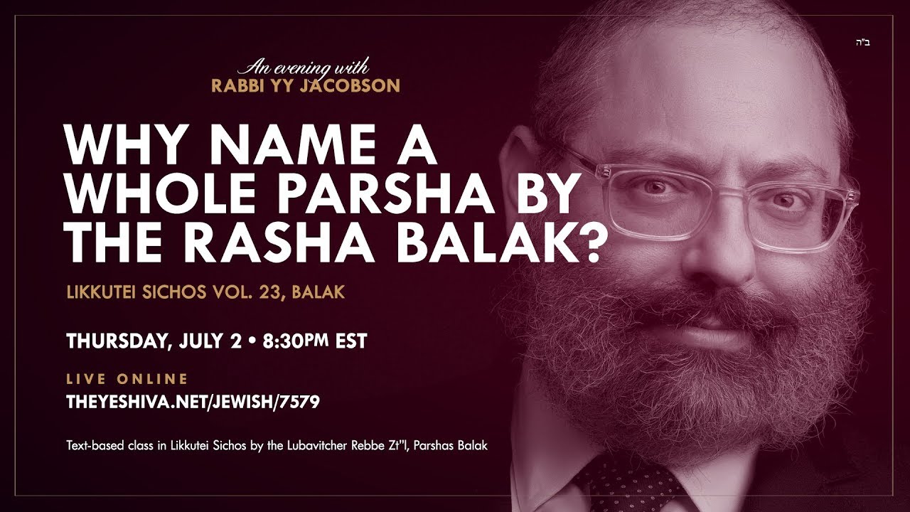 A tale of two Balaks. Rabbi YY Jacobson delivered a text-based class, in Likkutei Sichos Parshas Balak vol. 23. To download Source Sheets: https://drive.google.com/file/d/1RlSoDoTJ--jLQhq2OT3srk36XX_90SJG/view?usp=sharing The class was presented on Thursday, Parshas Chukas-Balak, 10 Tammuz, 5780, July 2, 2020, streaming live from Rabbi Jacobson's home in Monsey, NY